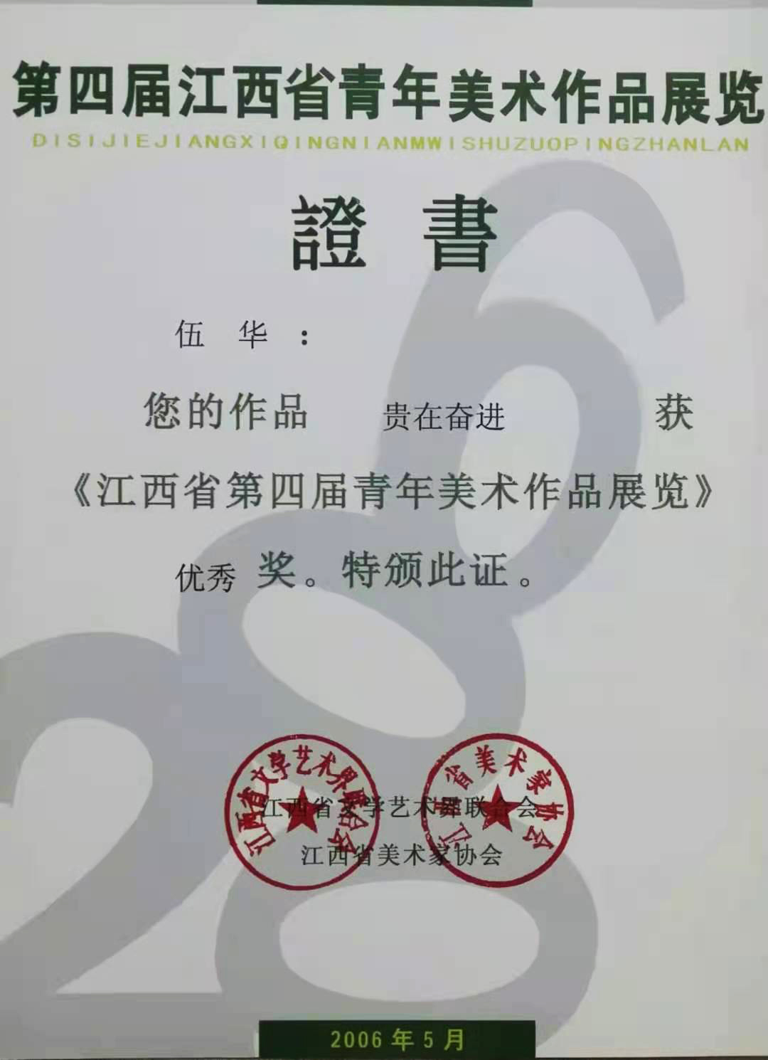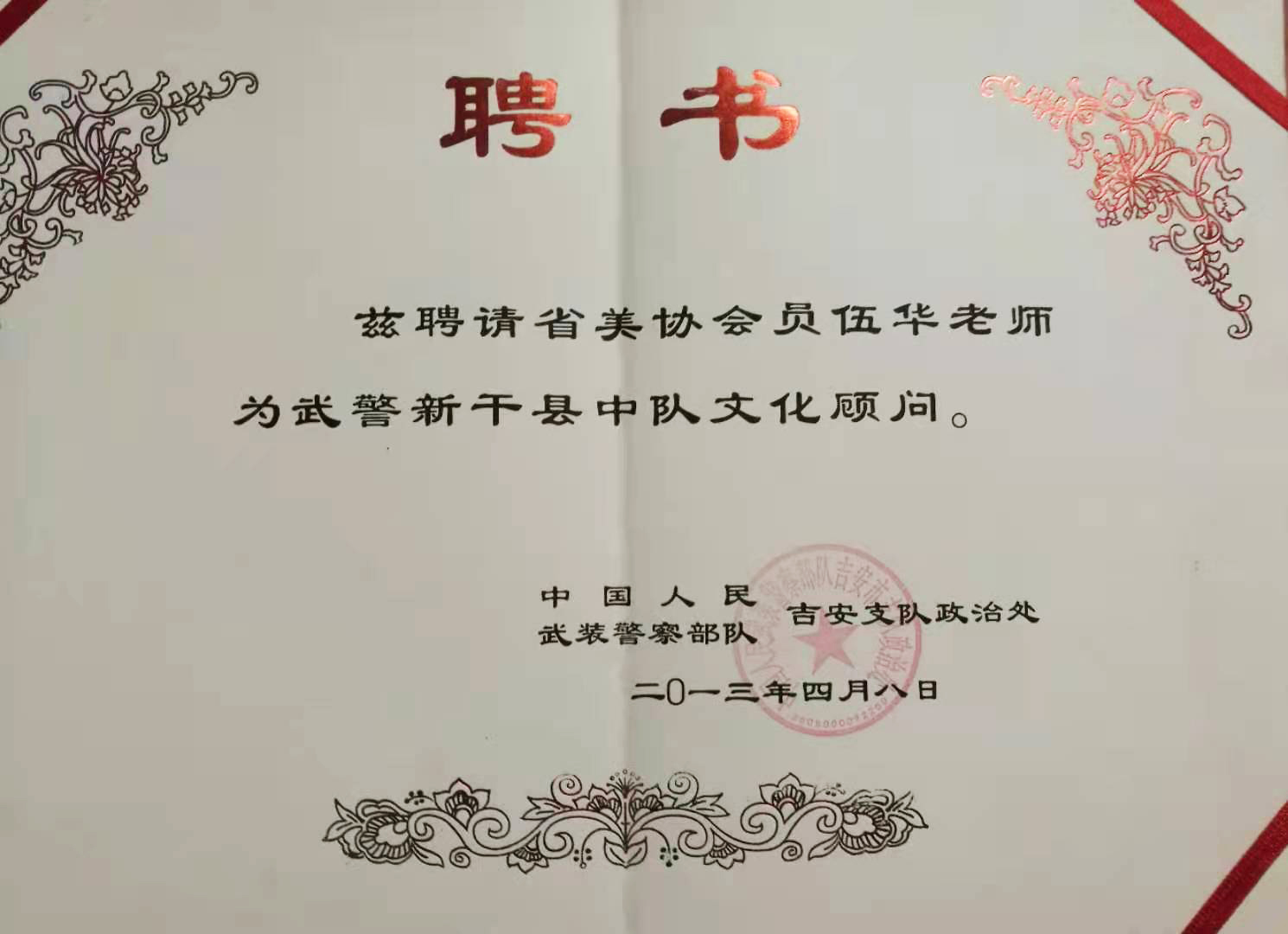 伍华,现为国家一级美术师,江西省美协会员,江西省书协会员,东方书画院副院长,南昌福山书画院副院长,吉安市美协理事等。