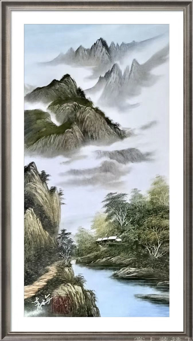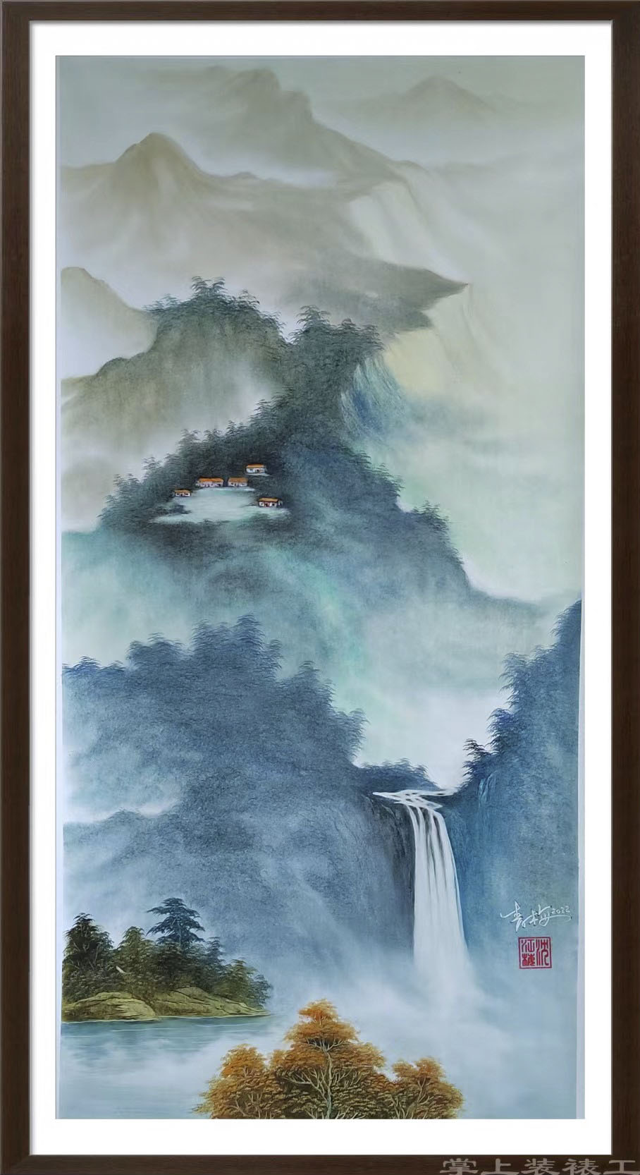 其作品题裁内容丰富,形式多样,云雾的浮动,远山清颖,空灵生动,合有生命动力,表现出应有的柔软和高山挺立的坚强效果。
