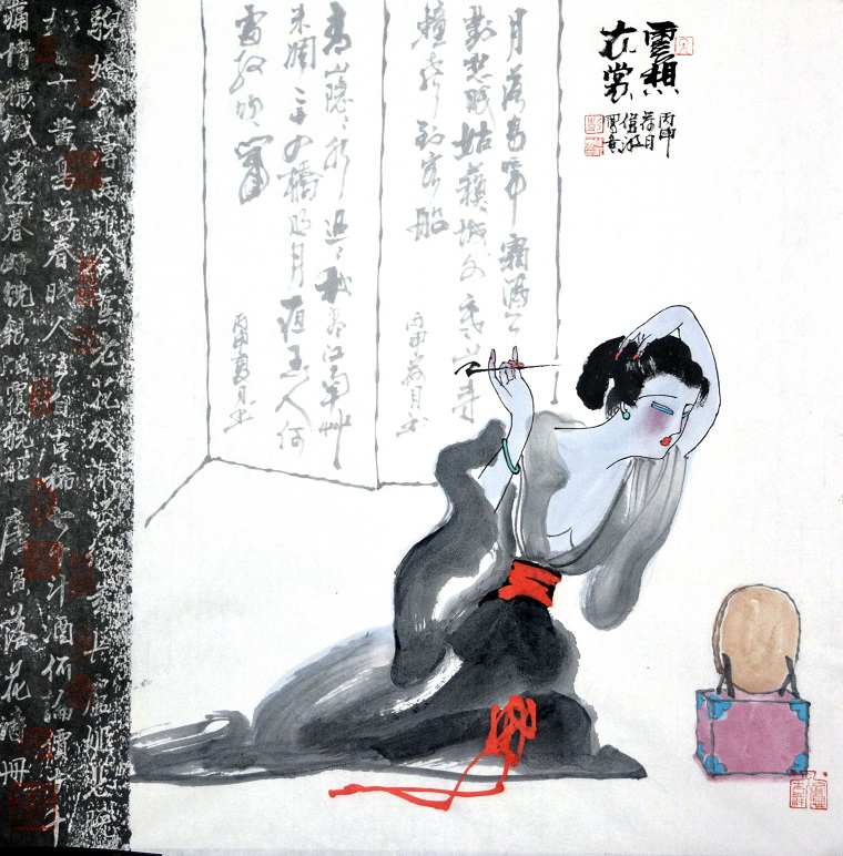 彭伟湘(1967年),湖南省美术协会会员,湘谭岳塘区美术家协会副主席,中国国家高级摄影师,政协委员,民进会员,擅长中国古典人物和花鸟画,其人物画根植于传统文化和古典诗韵中,融会了造型色彩的现代观念,笔下的仕女高士,既有传统的古韵,又有现代审美情趣,赋古追思,传情达意,使传统绘画富有了现代生命力,是极具创造力和有想法的画家。