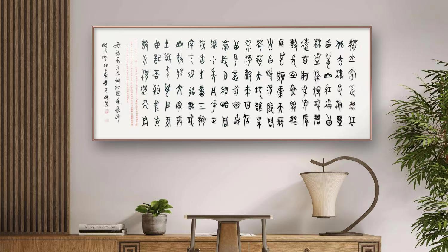 2014年央视举办中法建交五十周年,走进法国宣传中国篆书古文字,甲骨文《沁园春-长沙》荣获中法建交五十周年《国际友谊50年》大奖。