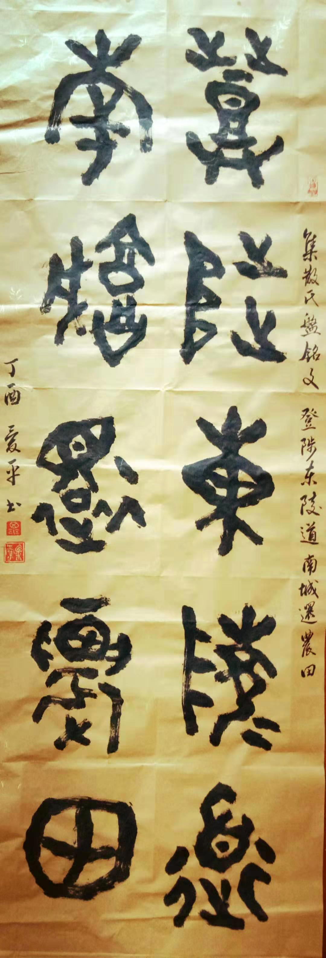 粟爱平,别号西米,1965年出生。湖南会同人,跟共和国第一大将粟裕同村同宗。怀化学院毕业,从教二十余载,后改行从事金融工作。现为湖南省金融书法家协会理事,怀化市书协会员。自幼酷爱书法,先后临习金文四種、魏碑、王羲之、怀素等名家碑帖,他的书法入古出新,融治求变,法度严谨,浑厚遒劲,尤以大篆、行草为佳,曾多次参加国内书法比赛并获奖,多次入选省市展出。
