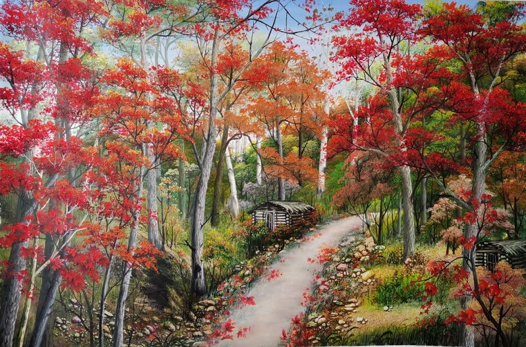 敦化红色旅游地:红叶谷:120厘米X80厘米