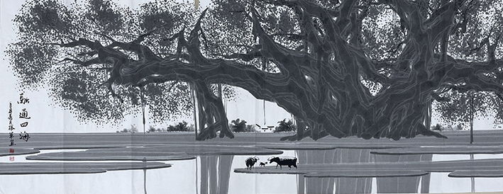 2018年5月,作品《界·静寂有声》入选第四届八荒通神——哈尔滨美术双年展;(中国画)