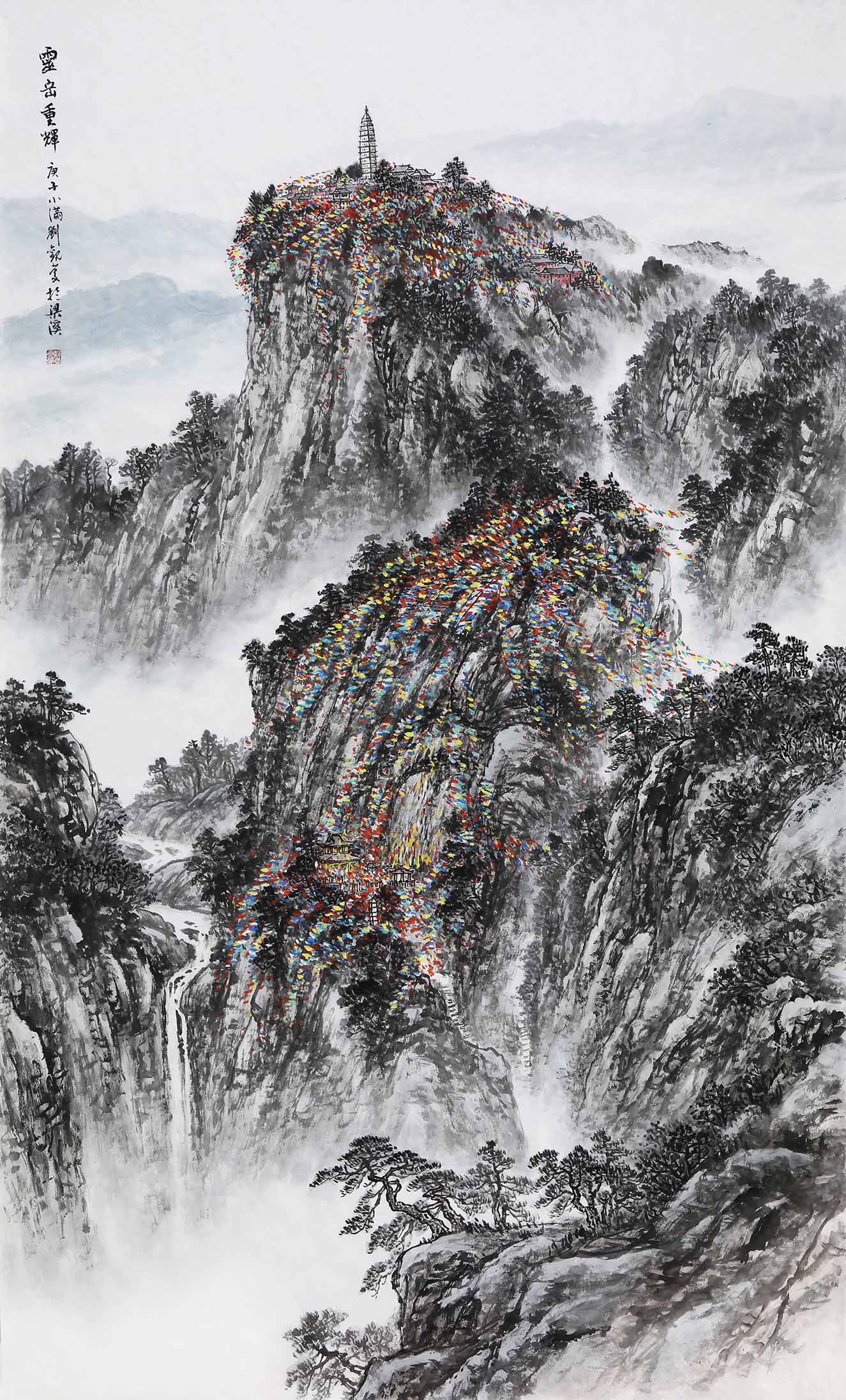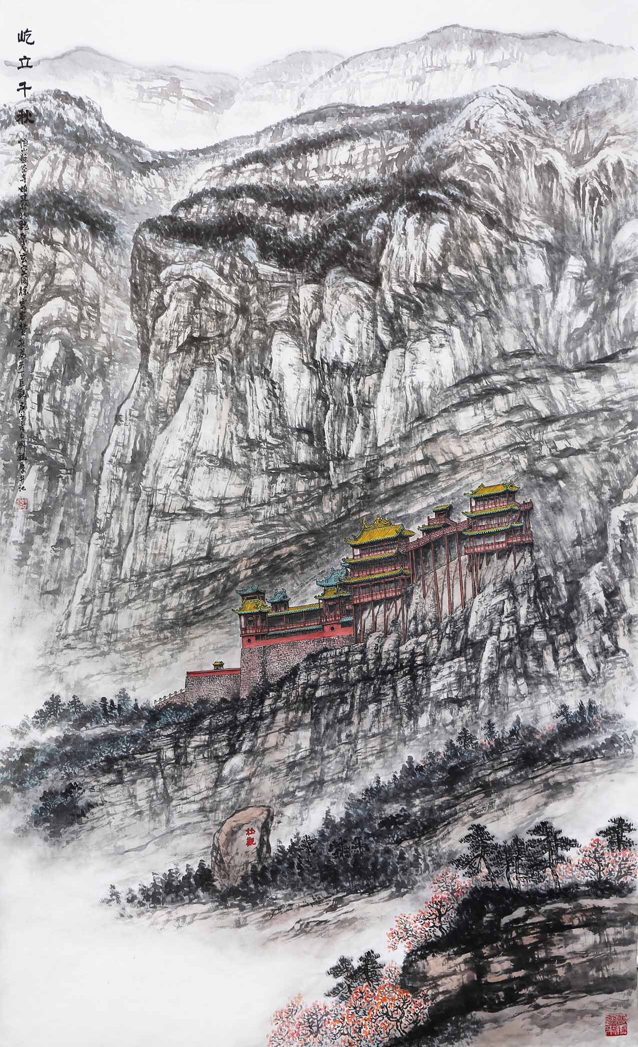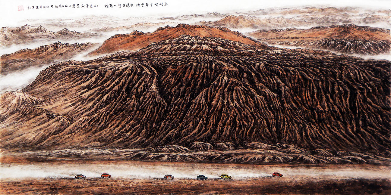 2008年,创作《泰山后石坞》《秋山行旅图》等泰山景色。