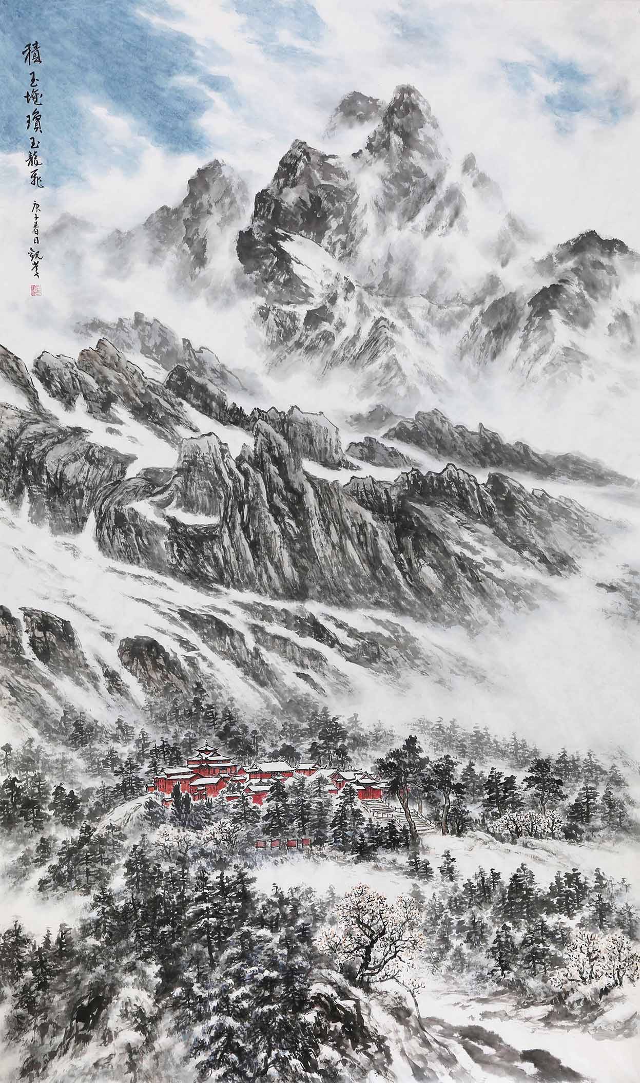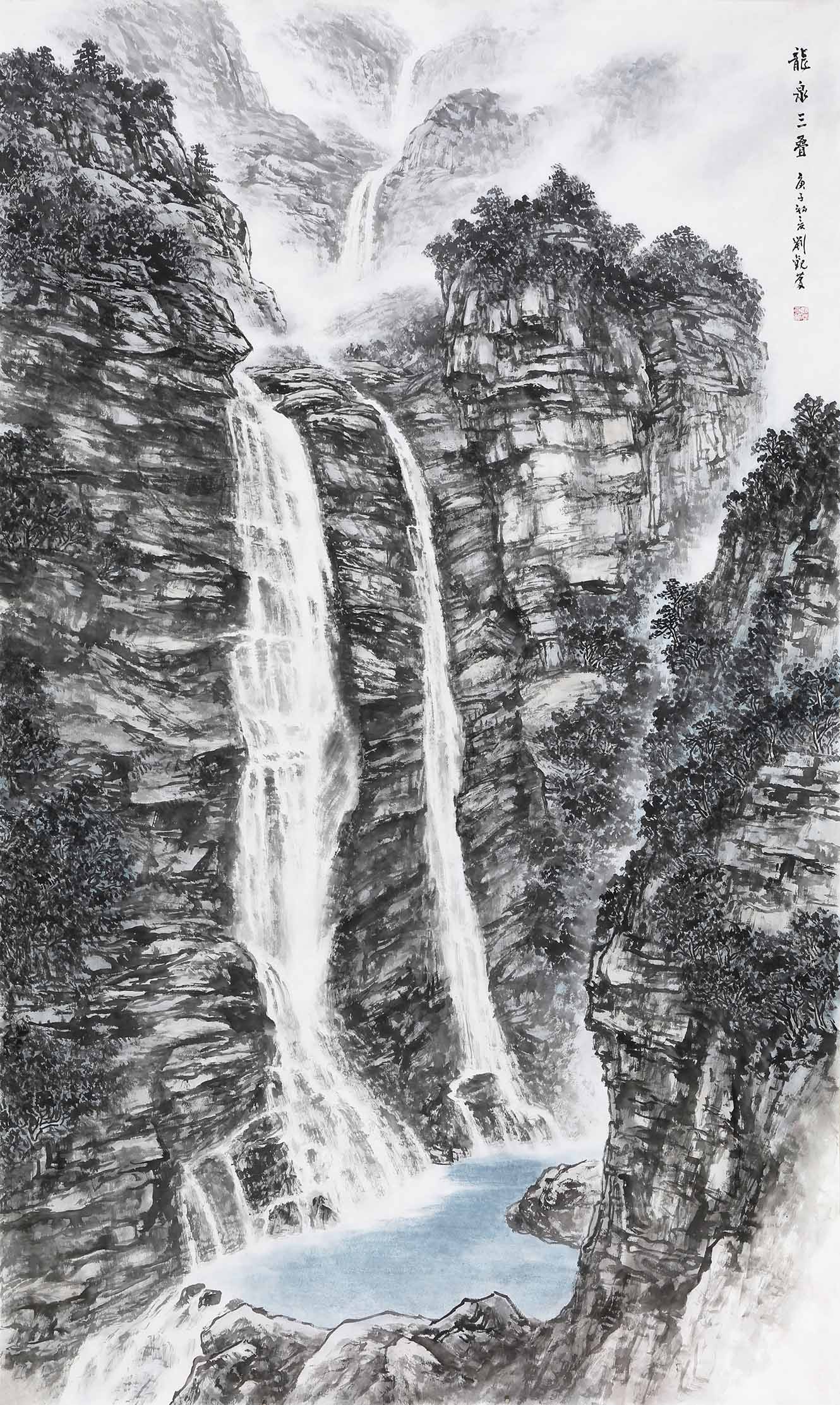 2012年,创作《飞泉鸣玉图》《孔庙古桧图》《崂山四景》等。
