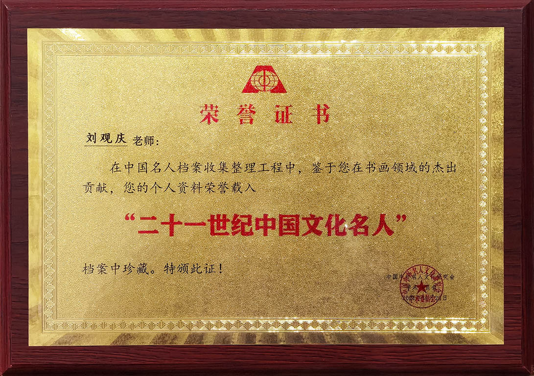 二十一世纪中国文化名人荣誉证书