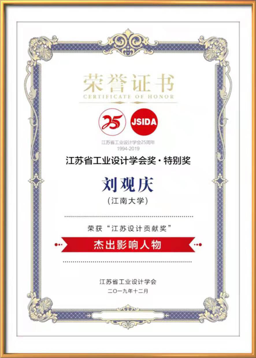 江苏设计贡献奖荣誉证书