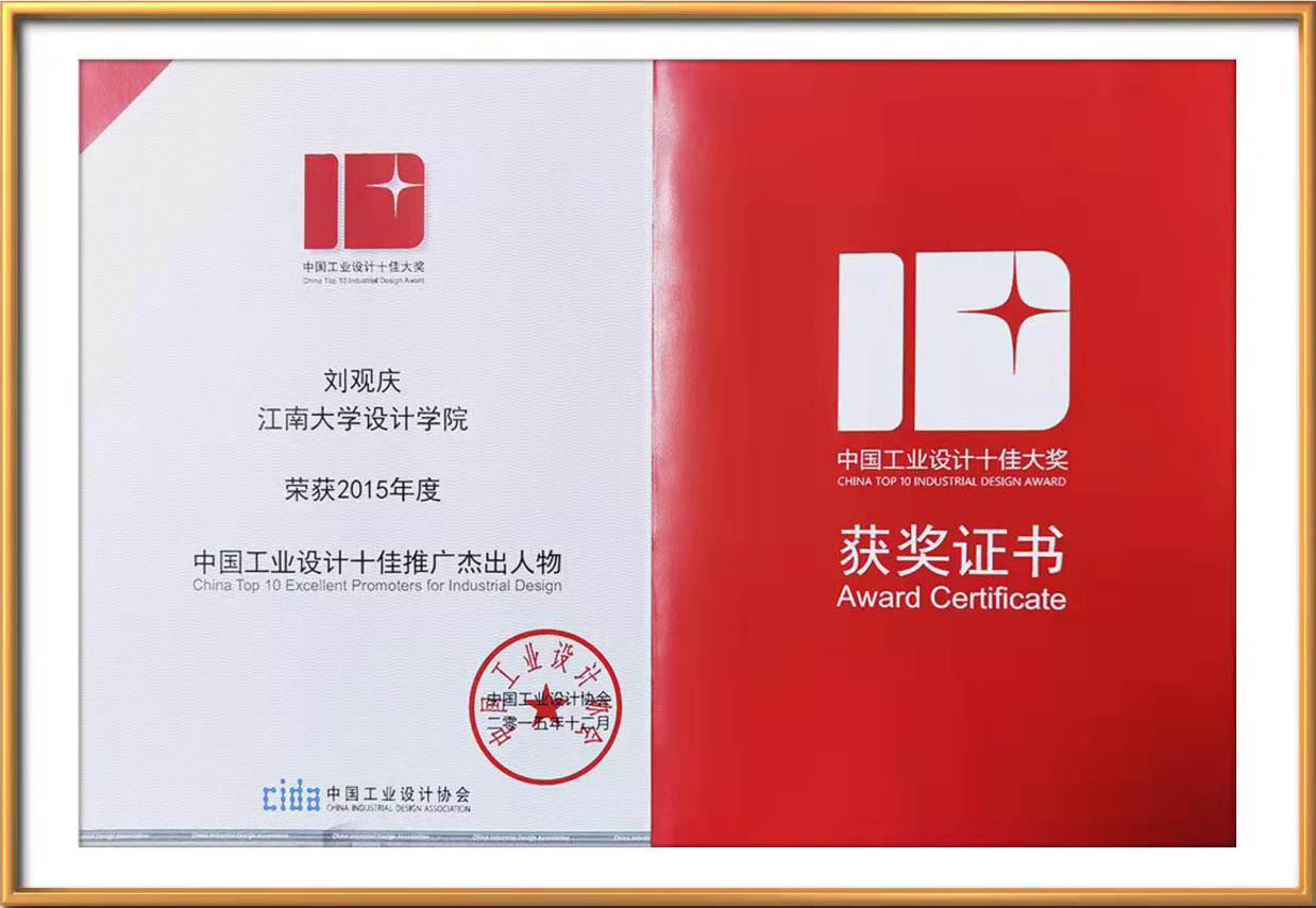 2015年,被评为中国工业设计十佳推广杰出人物。