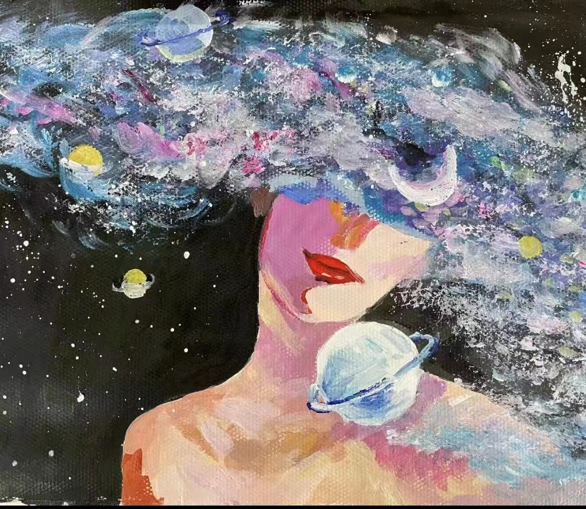 画面上的一笔笔色彩,如同她心里的一组组方程式,她用她的语言去编程表现,她用她的理念去写意破解。调色盘上的红黄蓝绿也仿佛是一个个响亮的音符,她用画笔指挥着这支乐曲,或高亢激昂如高山流水,或缠绵低回如江南锦绣。一幅幅作品如一首首动人心弦的交响乐,给人带来心灵的欢愉与抚慰。