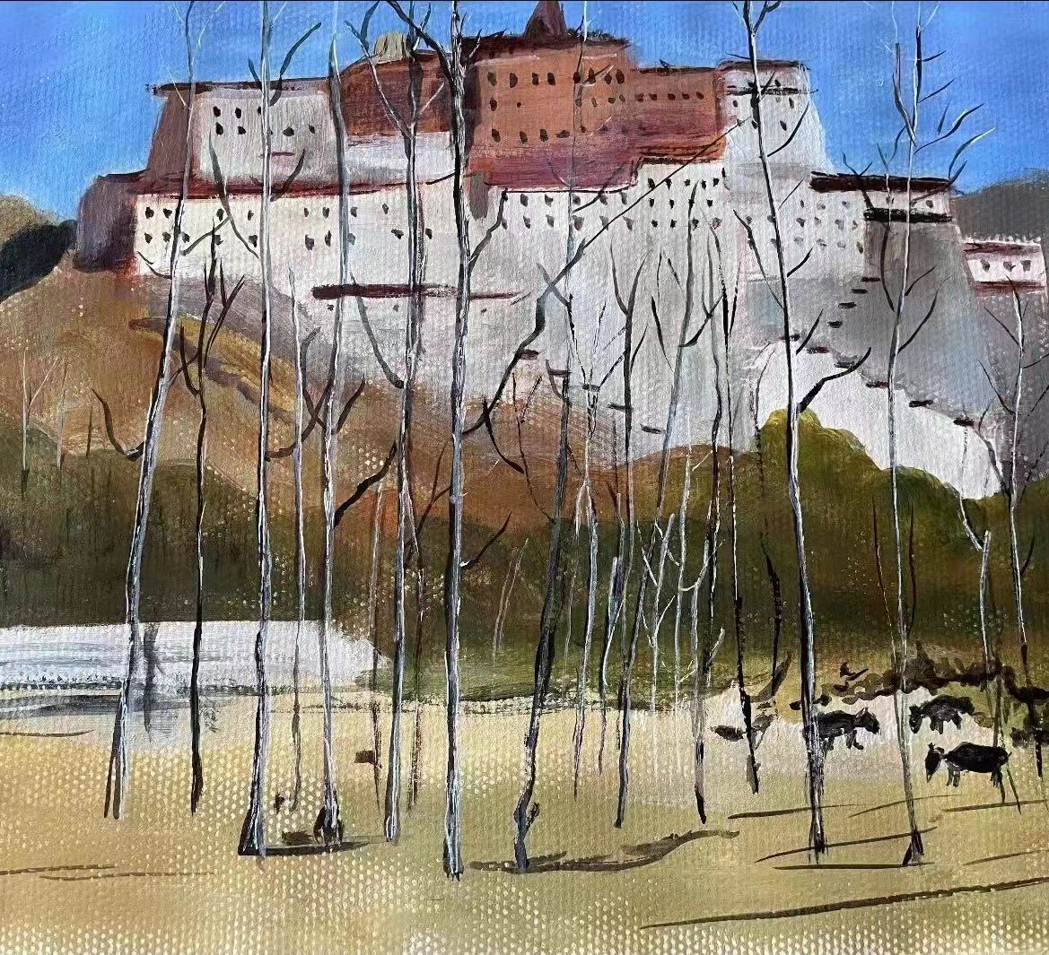 一幅画儿仿佛是一棵树,树根深深地扎在泥土之中。潘红侠老师的艺术作品把根须深扎在泥土里,她紧握着殷实的土地,用它来滋养她的艺术人生!