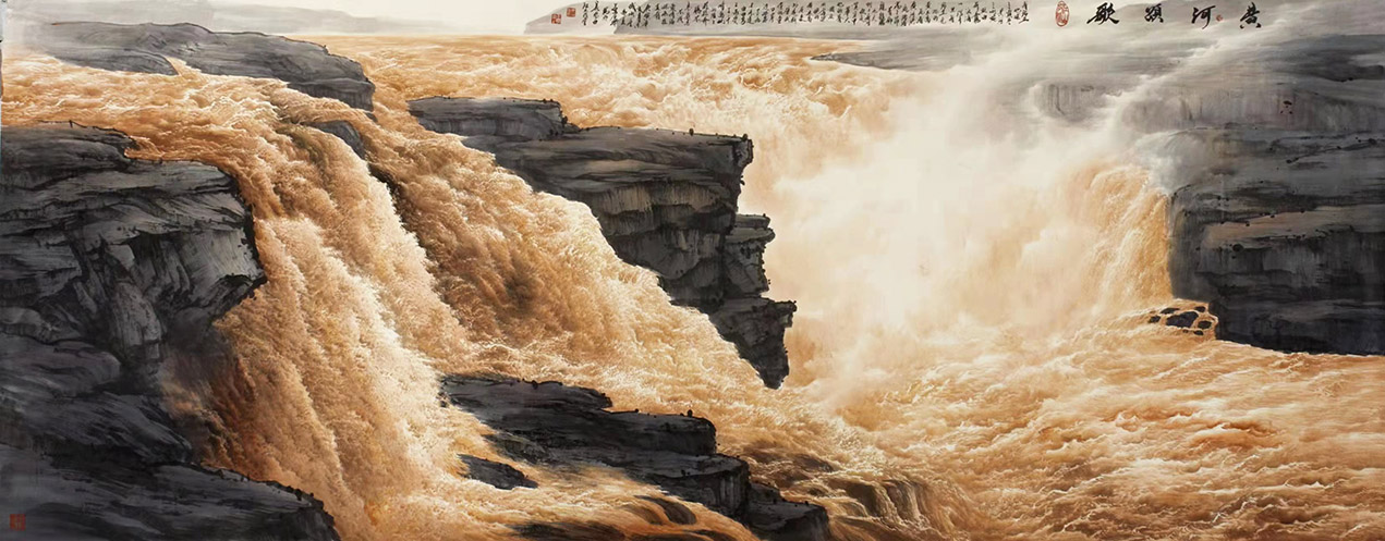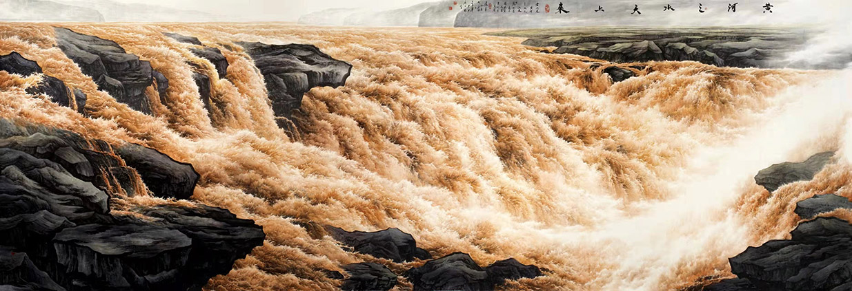 吕少华的黄河作品向着文化的引领,为炎黄子孙精神图腾造像,自他笔下,国画这种精英文化从本体上转化为大众文化,概括了伟大复兴进程中人民的心谱。