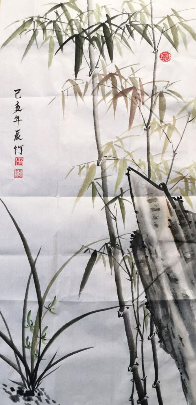辰竹把画竹作为情怀抒发和精神传承,其作品特点:①画形在于简,化繁为简,让留白成为情怀,成为无字内涵;②画魂在于灵,飘逸灵动洒脱,有点小随性;③画风在于势,气润山河,竹画中有气节、有倔强,有远近景,有侧叶角度枝,突出细节。真的是"艺海无涯,谦卑作画"!作品寓意是"事事顺利,节节高升"!作品深受大众喜爱!