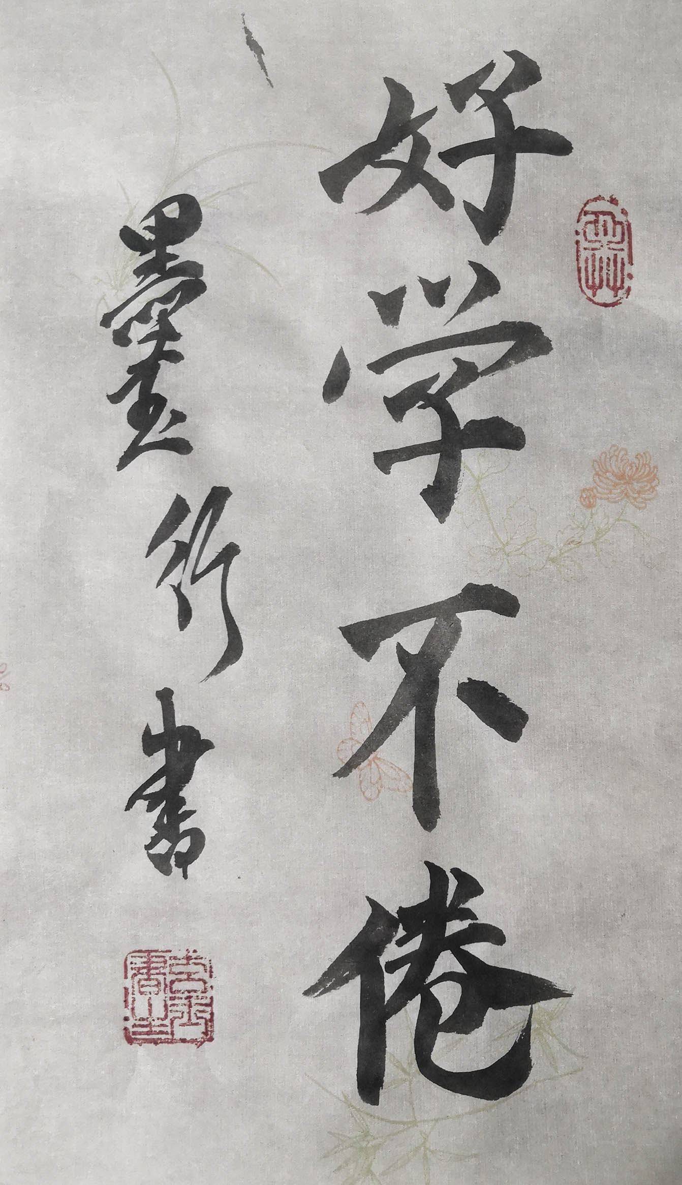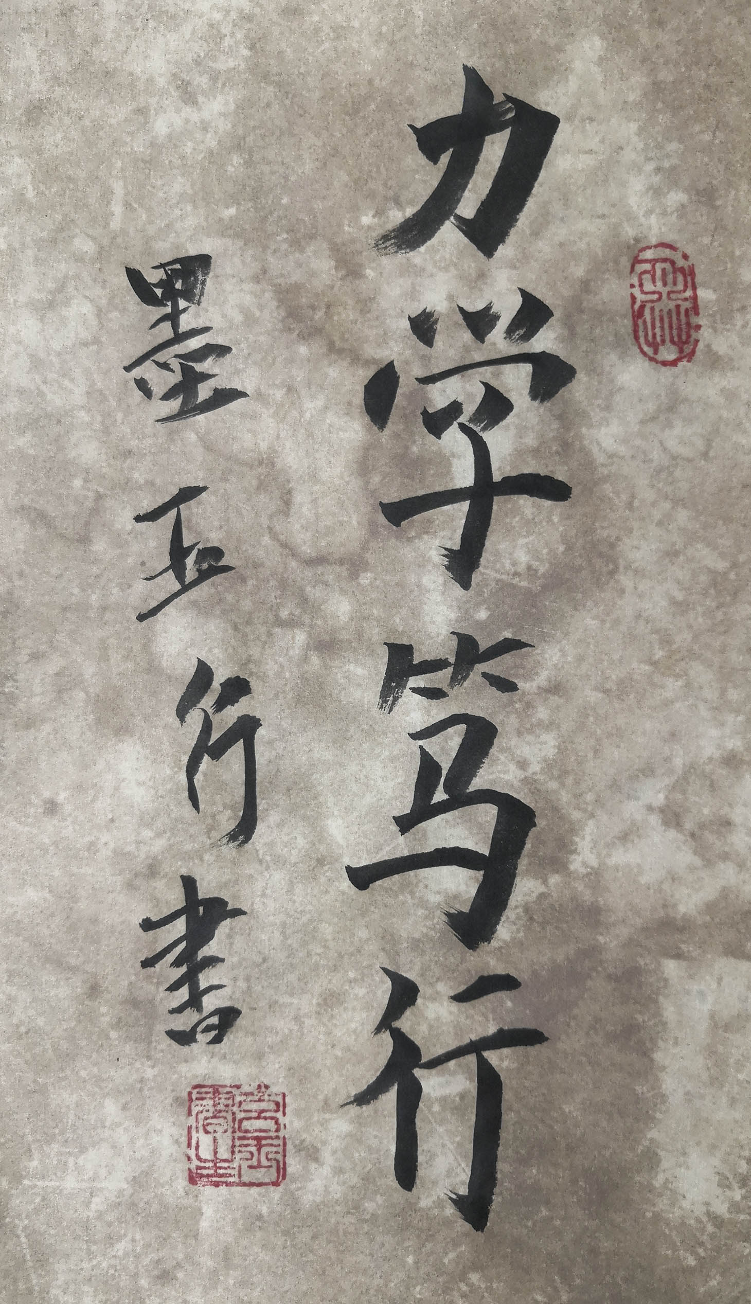 如今,他已经可以独立完成楷、行、草、篆、隶五体书法软硬笔作品,雅俗共赏,高古大气。硬笔凌空入笔,提按节奏把控的十分到位,如字生纸上,如河流瀑布,如夜中明月,栩栩如生,观之引人入胜,不舍离去。
