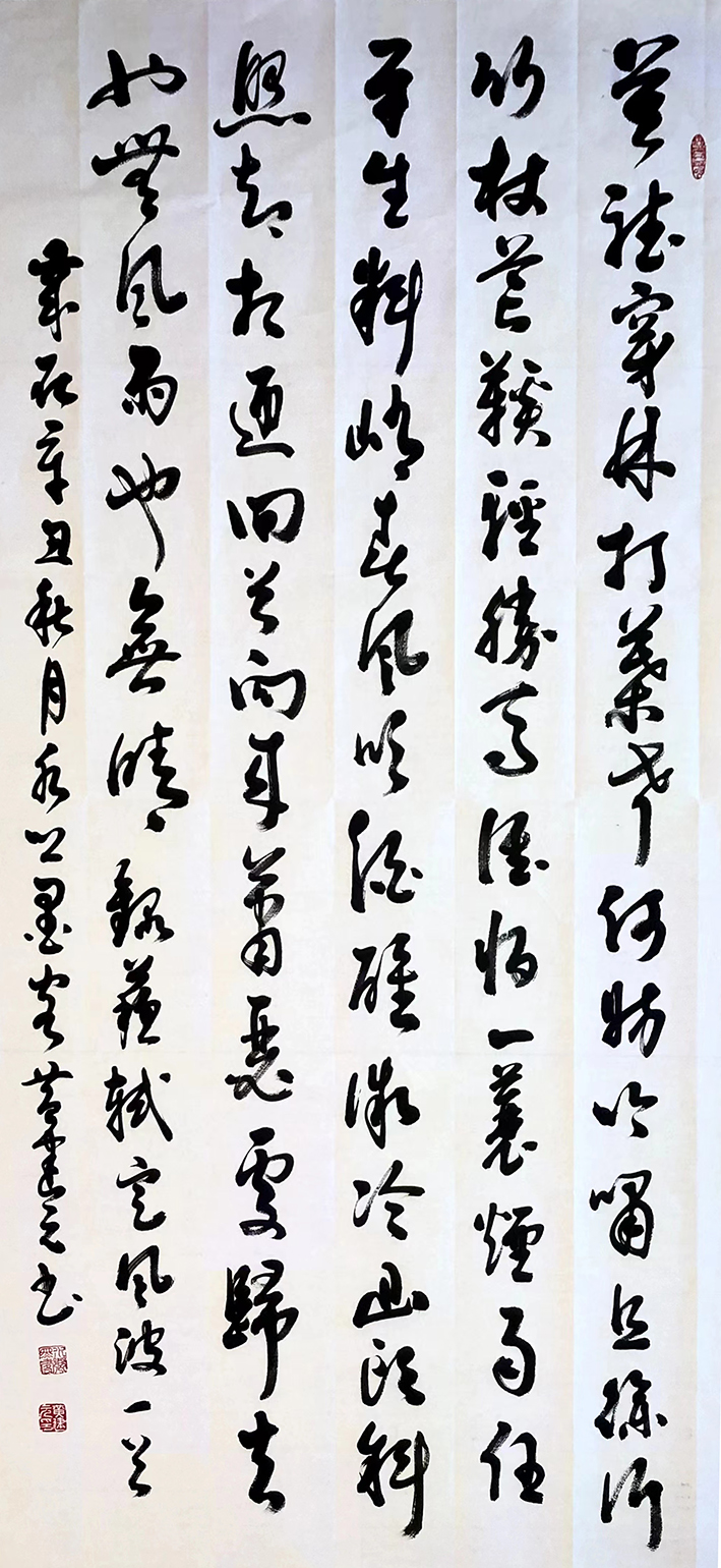 黄建元先生自幼饱读诗书,幼喜翰墨,潜心专研,二王、怀素草书30余年。他的草书善于在严格的法度之中自由驰骋,任性资性,丛笔所如,既无拘束而又不流于荒诞狂怪、气运生动,神采飞扬。众多名家名馆,国外友人收藏其书法作品。