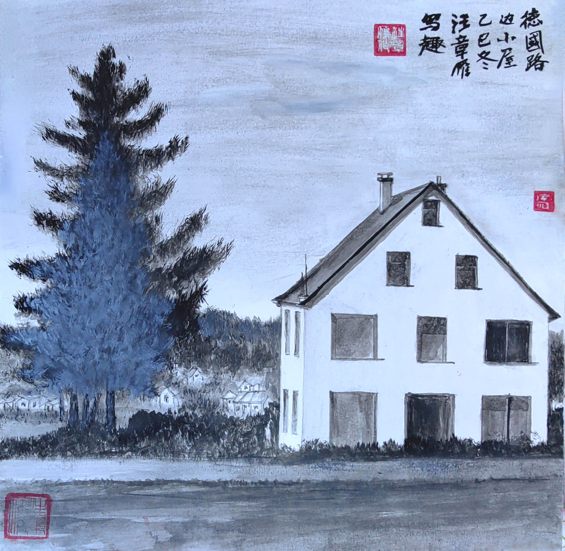 从生态关怀到人文温度,从跨文化对话到生活诗意,汪章雁的创作始终紧扣时代脉搏。他摒弃文人画的孤高与疏离,让水墨艺术回归生活本真。他的作品没有宏大叙事的刻意,也无技法炫耀的浮躁,而是以细腻入微的观察,融通中西方的艺术表达,在方寸之间搭建起世界与内心的桥梁,展显东方水墨艺术之美,让风景成为跨越地域的情感共鸣。他的风景写生水墨作品《傩仙镇》《阿尔卑斯山雪景》《雪原》《阿尔卑斯山屋》等在获国外国内艺术大赛中频频获奖。