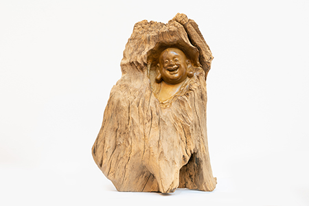 靠着观察、模仿、“偷”来的手艺,她用灶台边的烧火柴雕出了处女作《棒棒糖弥勒》。令她没有想到的是,她的处女作还尚未焐热,甚至没来得及拍照就被人收藏了。这种奇迹般的事情让她感到无比的骄傲,内心满是兴奋和成就感。同时也让周围的人惊诧不已。全都被她的处女作震撼住了。从此再也没人敢笑话她了。于是于杨青从“偷”艺转入艰苦的学艺历程。