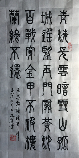 2020年为支援武汉人民抗击新冠病毒,义捐4幅书法作品。
