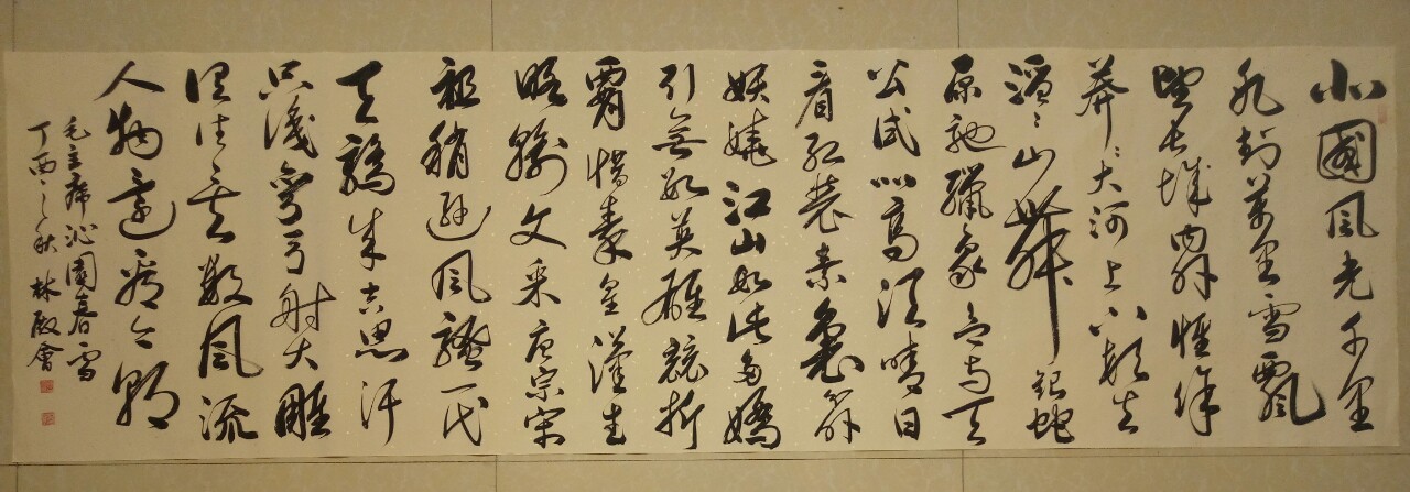 林殿会,翰林斋主人,1960年2月出生于羲之故里山东临沂,临沂市兰山区书法家协会副主席,原临沂市政协委员,山东省书法家协会会员,临沂漢邦艺术馆馆长,中国钓鱼台书画院理事,山东商联书画院理事,登录中华名人网,全国名人书画艺术界联合会主任委员,人民文艺家协会会員,国家一级书画师;就读于清华大学美术理论研究与书画创作高级研修班;中国书协培训中心张世刚、刘京闻导师班,清华美院钱守宽导师班,山东省书协王羲之书画研究院导师班。被山东省品牌文化组委会评为爱心书法家;中国诚信品牌及杰出人物临沂诚信大使,被中国教育品牌质量万里行评为诚信艺术家,并录入文化部艺术人才库。中国硬笔书法高级培训师;临沂市文化艺术交流协会副会长;临沂漢邦艺术馆书画培训中心导师。先后入展大海杯——欢度国庆节·喜迎十八大书画展,首届天元杯美术摄影大赛入围奖,入展大海杯民营企业家聚力十三五共圆中国梦书画作品展,入展大海杯庆祝山东省工商联成立60周年书画作品展,被山东省书法家协会书法创作提高班评为优秀学员,入展第一届书院杯——山东省书法篆刻作品展,入展民族记忆山东抗战歌词书法作品大展,入展万福杯全国书画大展,入展临沂市第八届书法临帖与创作大赛获优秀奖,中国文化教育诚信品牌诚信艺术家,临沂市政协书画室特邀书法家,入展首届翰墨兵团·书香团场全国书法作品展等。曾荣获“山东省富民兴鲁劳动奖章”、“临沂市知识型职工标兵”、“临沂商城十大爱心人物”、“临沂商城十大创业人物”,临沂市非公有制党组织优秀共产党员”等荣誉。