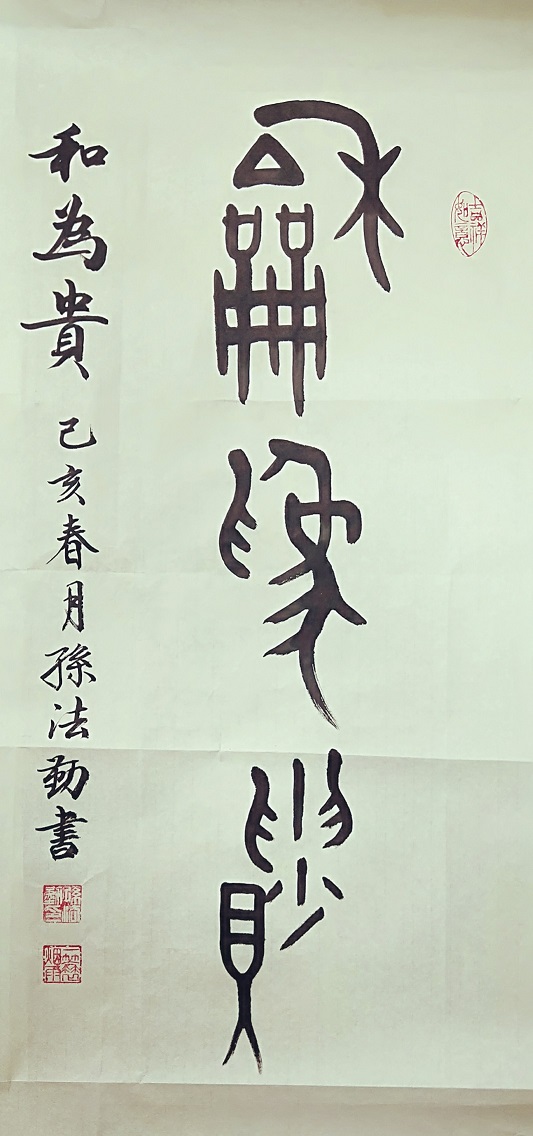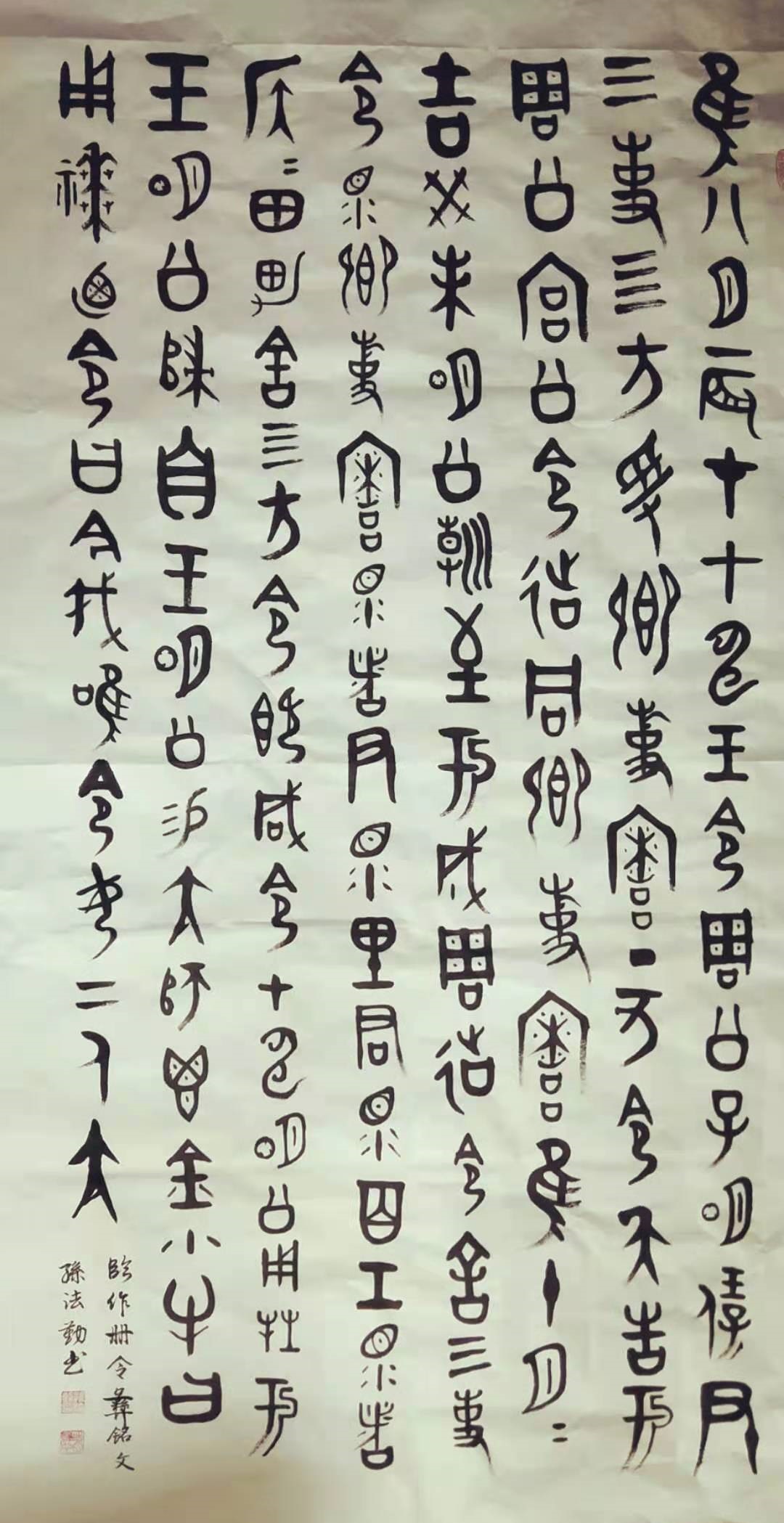 孙法勤,男,1947年出生于济南。练习书法40余年,早年练习颜欧柳赵以及二王书法,近几年对金文文字研究和书法有所涉猎。在金文文字研究和金文书法方面,着重向金文文字研究泰斗蒋维崧教授学习,并对蒋老的金文书法练习较多,取得了一定的成绩,受到书法同仁“颇为神似”的赞誉。