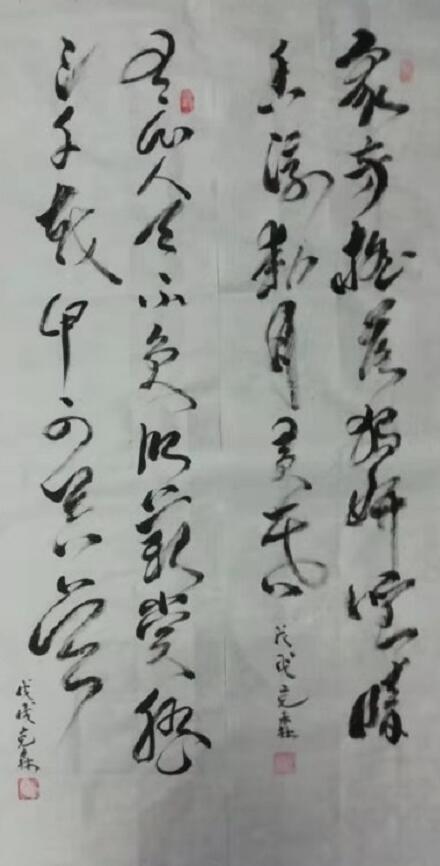 穆克森老师对研习书画深有体会,他觉得一副作品不论好坏,都体现作者创作时的状态,下笔有轻、重、缓、急,书面布局有开阔和紧凑之分。每次下笔都和创作者的心灵、眼神、手指的动作联系在一起。穆老师诗书画皆精通,笔行墨砚,犹如龙蛇动,形体神韵一脉承,风云变幻尽在笔意中。神情飞扬天地外,全神贯注于毫峰。他创作的诗词约三四百首,在多种网络和刊物上发表。