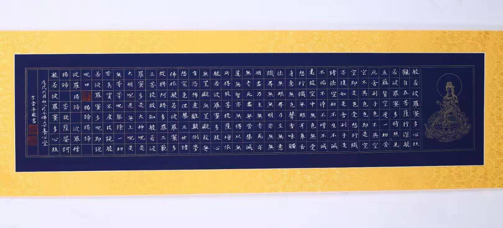 方晋平的书法作品主要是楷书,尤其工善小楷。大楷法度更加森严,需有逆锋、藏锋之笔,但小楷可以露锋直行,是抄写的最佳书体。因此,方晋平的佛经作品多以小楷创作,作品俊秀爽劲,严谨工整,有着大楷的精严端庄也不乏行书的秀雅朗润,肃穆威严,颇具禅味。楷书让人正身,自有一股刚正不阿之正气蕴藉其中。行书则以变通灵动,让人通达古今,因时制宜。方晋平兼善二体,不仅书品贵重难得,而且一身正气令人肃然起敬。