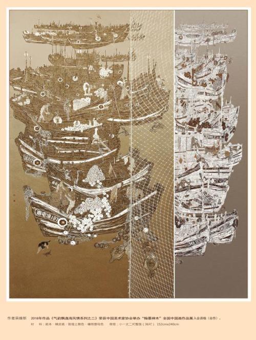 2018年作品《气韵飘逸海风情》系列之一,入选中美协举办的,“万年浦江全国中国画(工笔)作品展(合作)。 2018年作品《飘然和蓬声》入选中美协举办的,2018年中国梦·燕赵雄风全国中国画展。