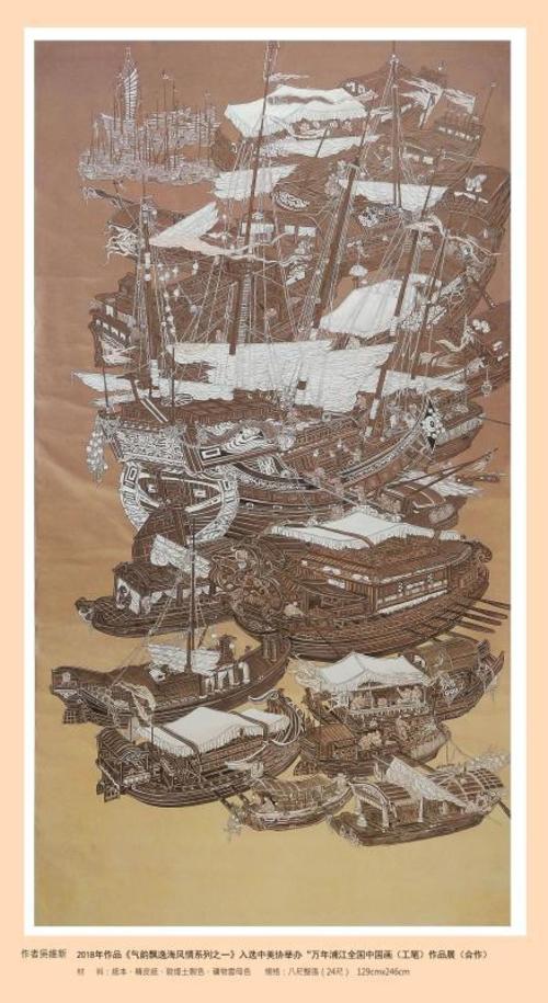2018年作品《滩深渔获笛声歌》入选中美协举的,“水墨融情海丝梦”首届全国中国画作品展。