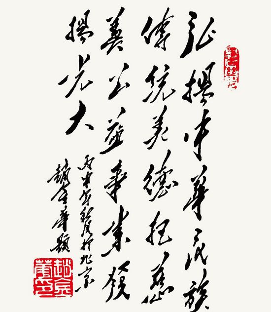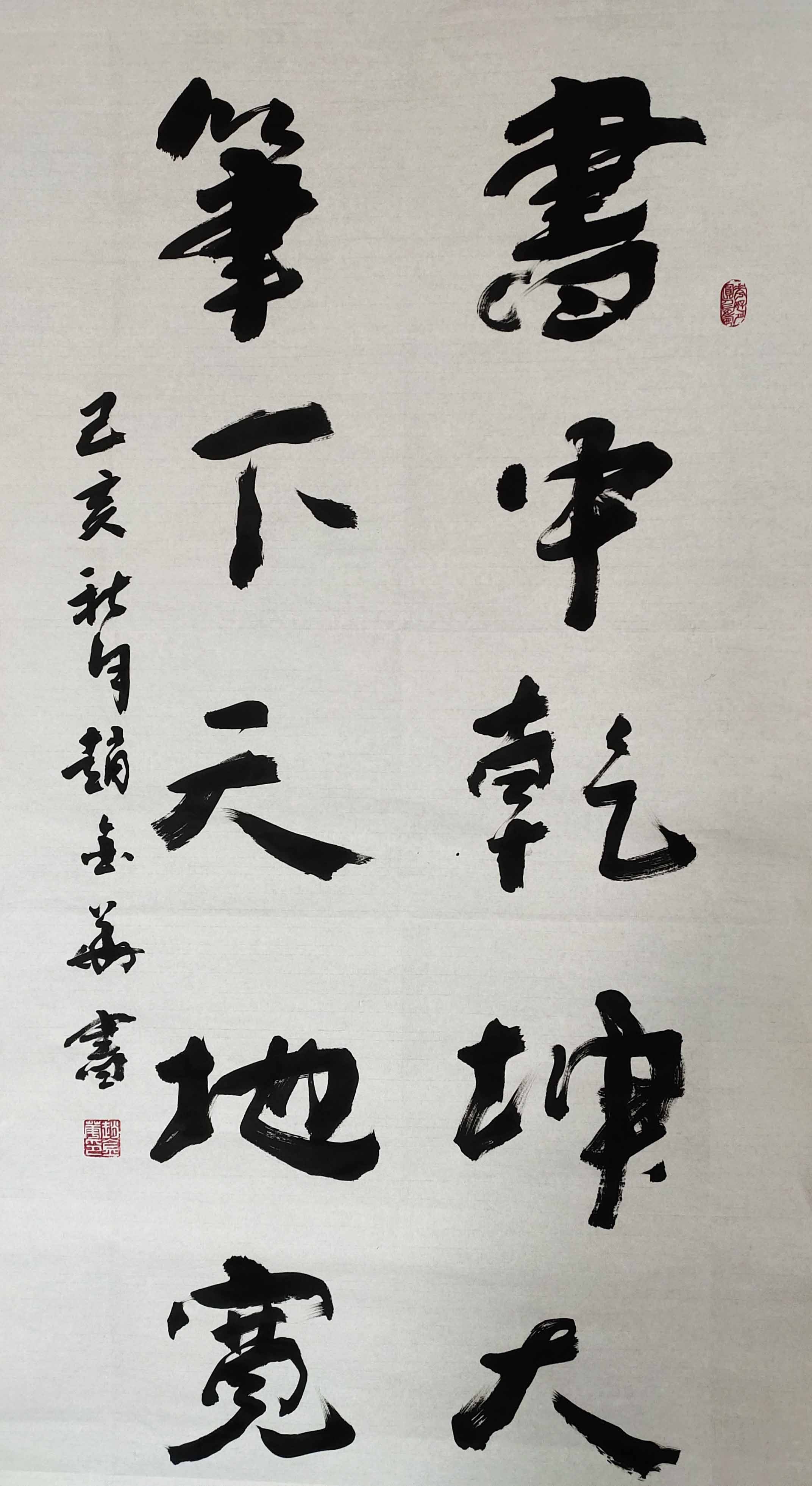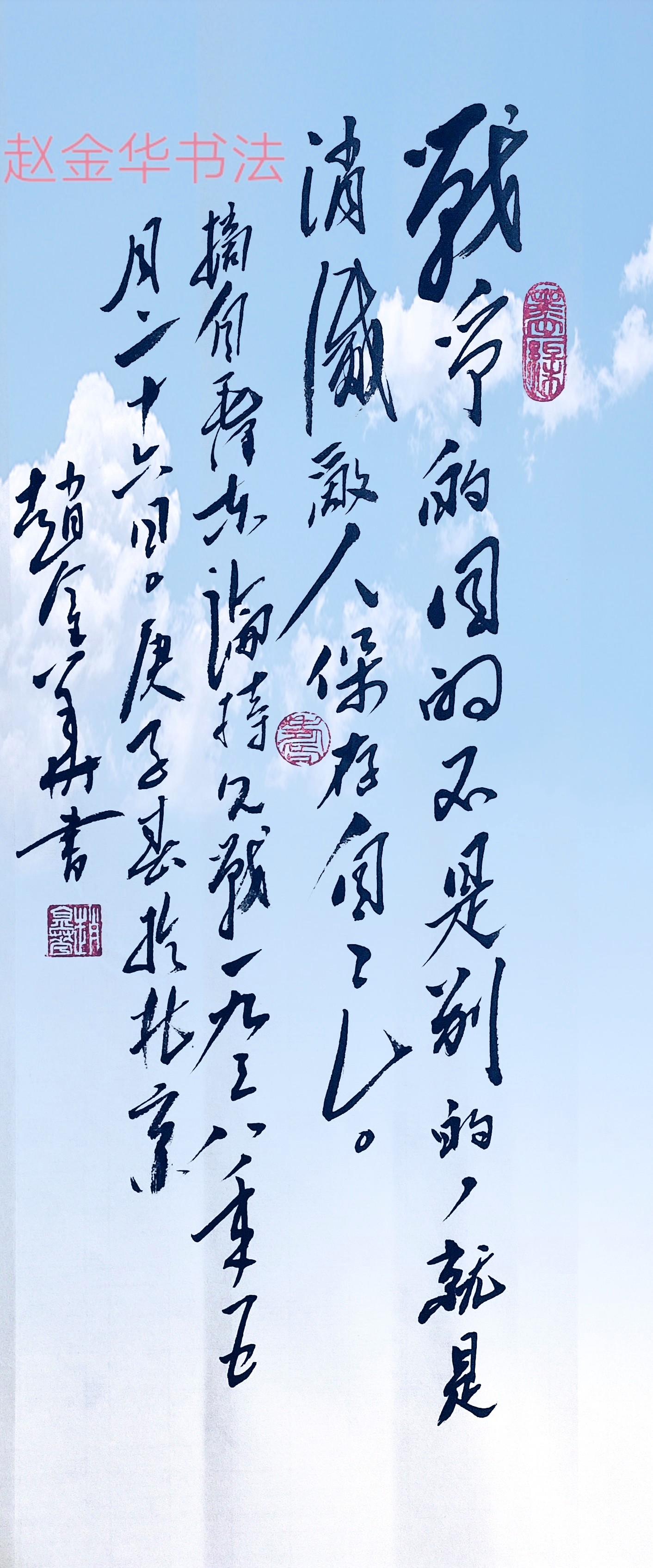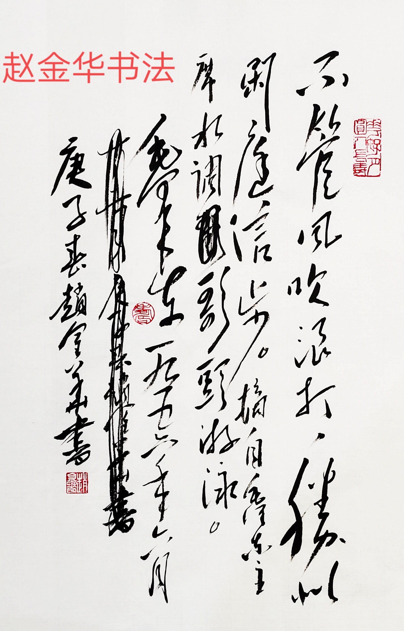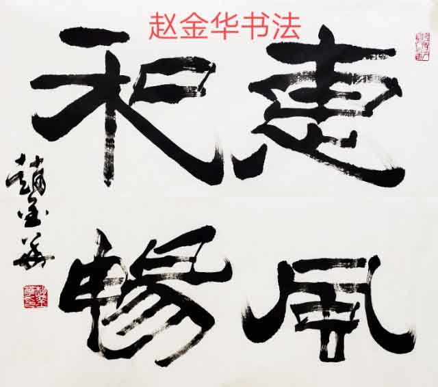 赵金华先生是一位师古而能得化的书法大家,不但法取碑帖尚古,而且师益今门求新,在身怀大技的同时,又心具义化弘扬的大志,赵金华始终用自己书法艺术的一技之长歌颂伟大的祖国和人民,教导人们积极向善、爱国、爱党、爱家、不忘初心,牢记使命,诚实守信,使我们的中华民族更具凝聚力,使我们的国家更加和谐、更加稳定、更加的强大,始终坚持为人民大众创作出喜闻乐见的艺术精品,始终坚持人民大众所喜爱的就是自己所努力的方向,所以他的书法创作已经突破国界,在世界舞台上大显风华!这是他文化传承的功绩,也是文化弘扬的大德,功德高铸,必然是影响力可续千年的大手笔!赵金华先生以其独特的书风和时刻为了人民大众的思想理念,确立了在书法艺术发展史上的特殊地位。