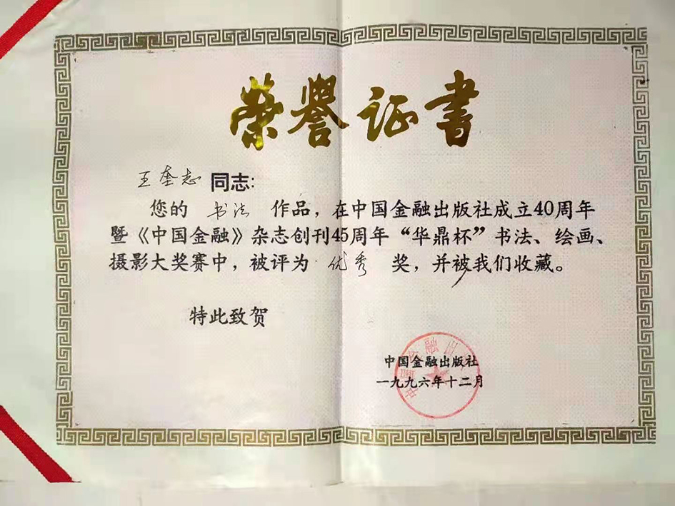 在第五届“金鼎奖”全国书法美术大展中荣获银奖,并入选《全国书法美术优秀作品集》荣获中国书法百杰荣誉称号;