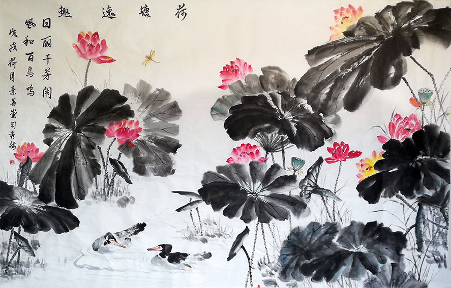 2001年,我们祖国申奥成功!是我们全国人民的一件大喜事!做为一个中国公民,我也非常感动和自豪,于是有一种想法,我要用我的绘画语言来表达对2008年北京奥运会的祝福。反复构思,历时四年,巨幅工笔长卷《中华辉煌》创作完成,整幅作品长32米,宽1.48米,谨笔绘就,乃成牡丹2008朵,吉祥异禽18只,且将文字,奥运福娃等设计元素融入其中。