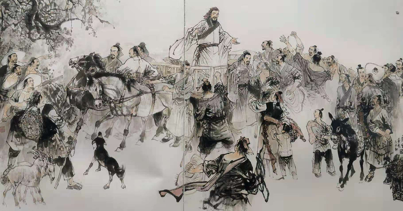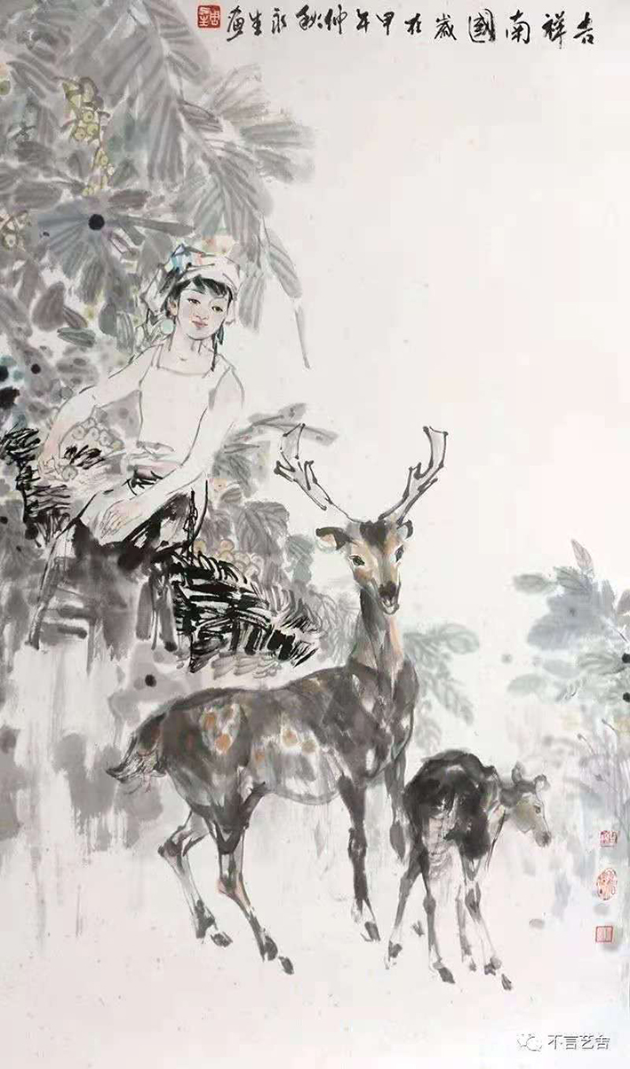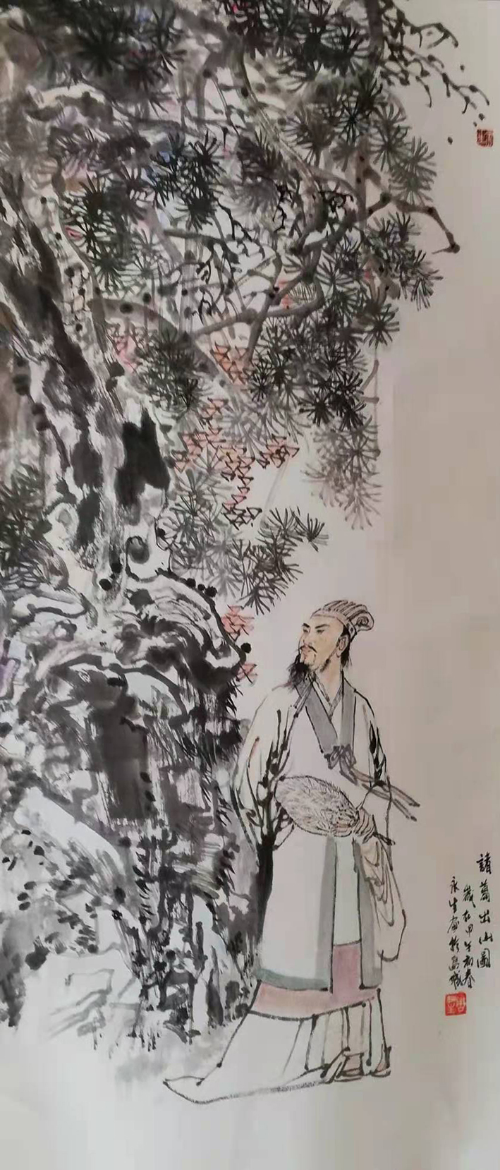 其中国人物画造型生动、构图严谨、神韵含蓄、内敛、笔墨酣畅,画作格调清新,渗透着儒雅的文人画风骨而为业界所称道。