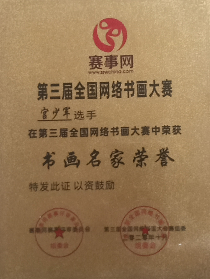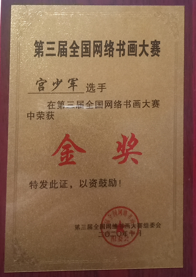 第三届全国网络书,画大赛获金奖;