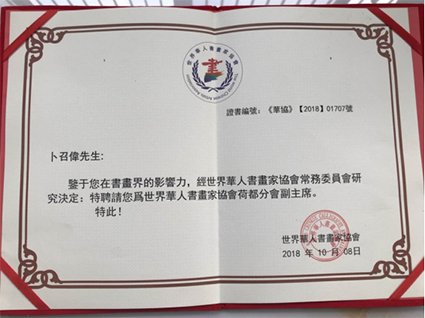 2019年评定为中华艺术名家称号,同时获“中华国宝奖”金奖。
