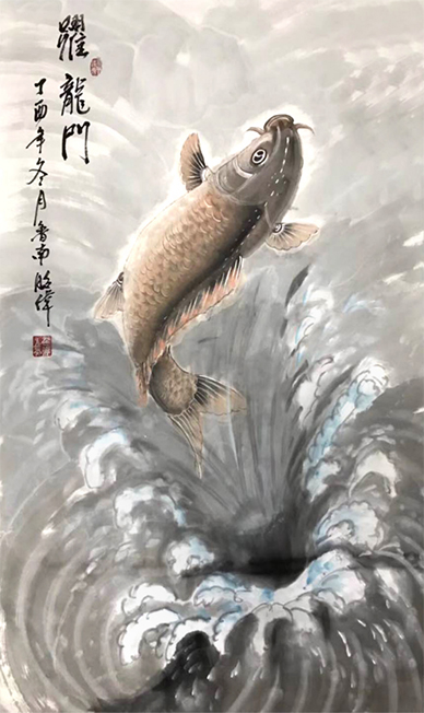 建党九十周年全国书画大展三等奖作品《跃龙门》