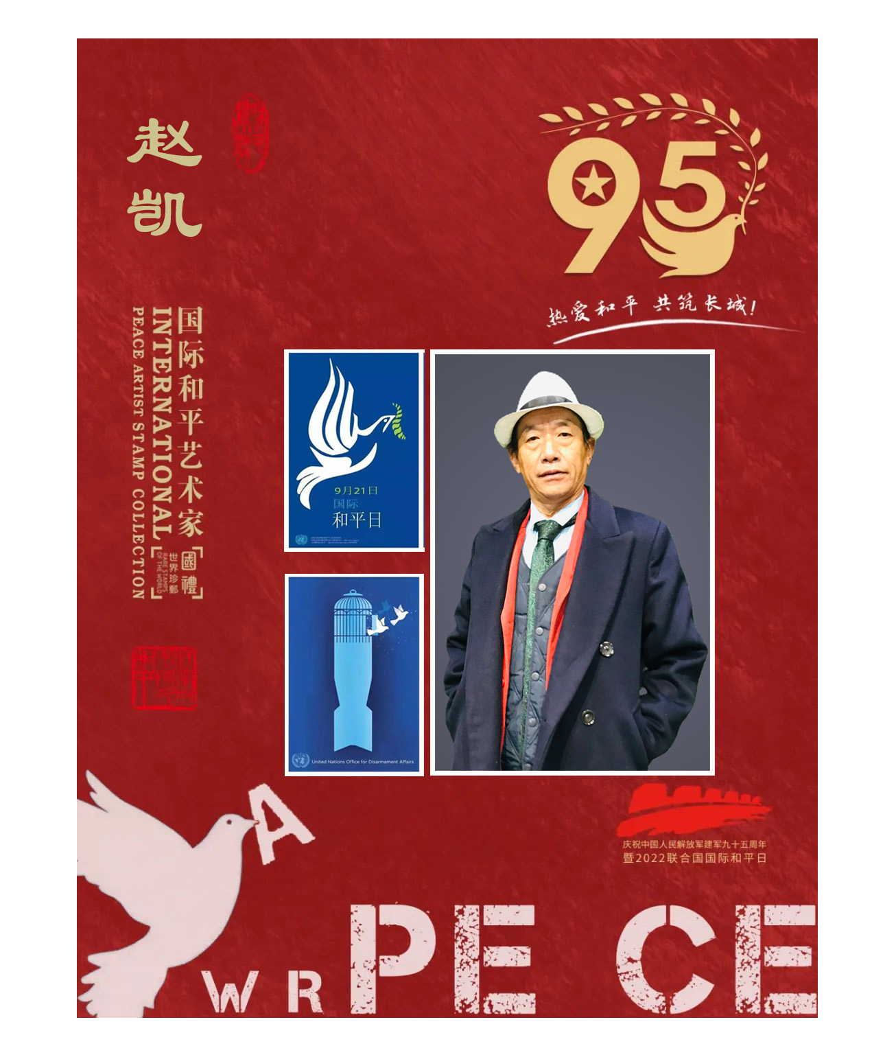 赵凯先生在庆祝建军九十五周年暨2022联合国国际和平日被授予【国际和平艺术家】至高荣誉。