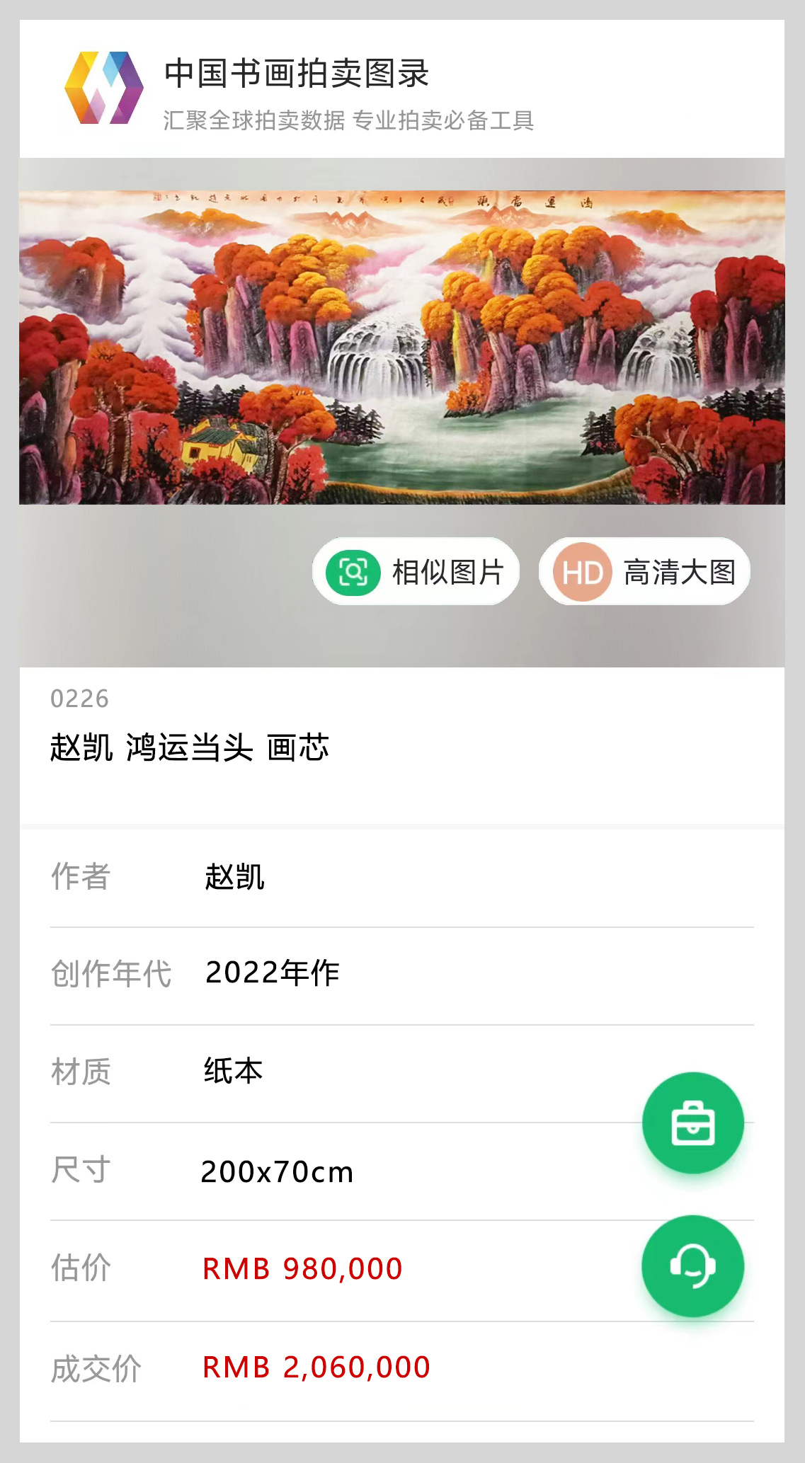赵凯先生的作品《鸿运当头》在2019年被比亚迪董事长王传福先生收藏于会客室中。又于2023年参加雅昌拍卖会,以206万人民币落槌成交。
