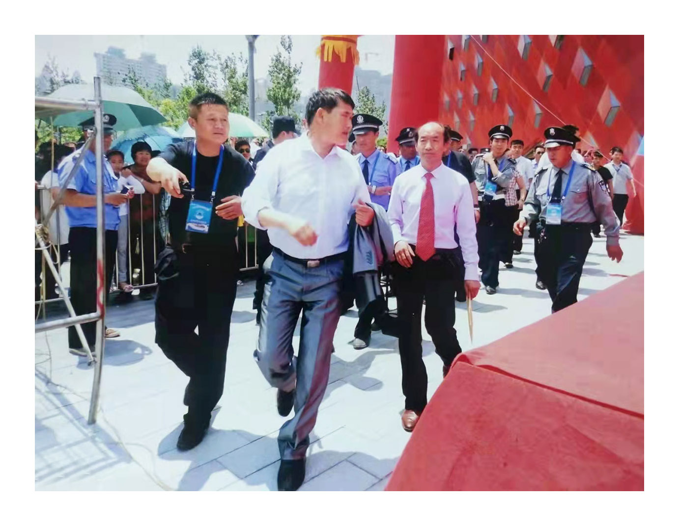 与大衣哥朱之文受邀一起参加山东省文化产业博览会,现场展示非遗绝学悬笔、悬纸、悬腕三绝书法,书写《鸿业腾飞》,并被活动组委会永久收藏。
