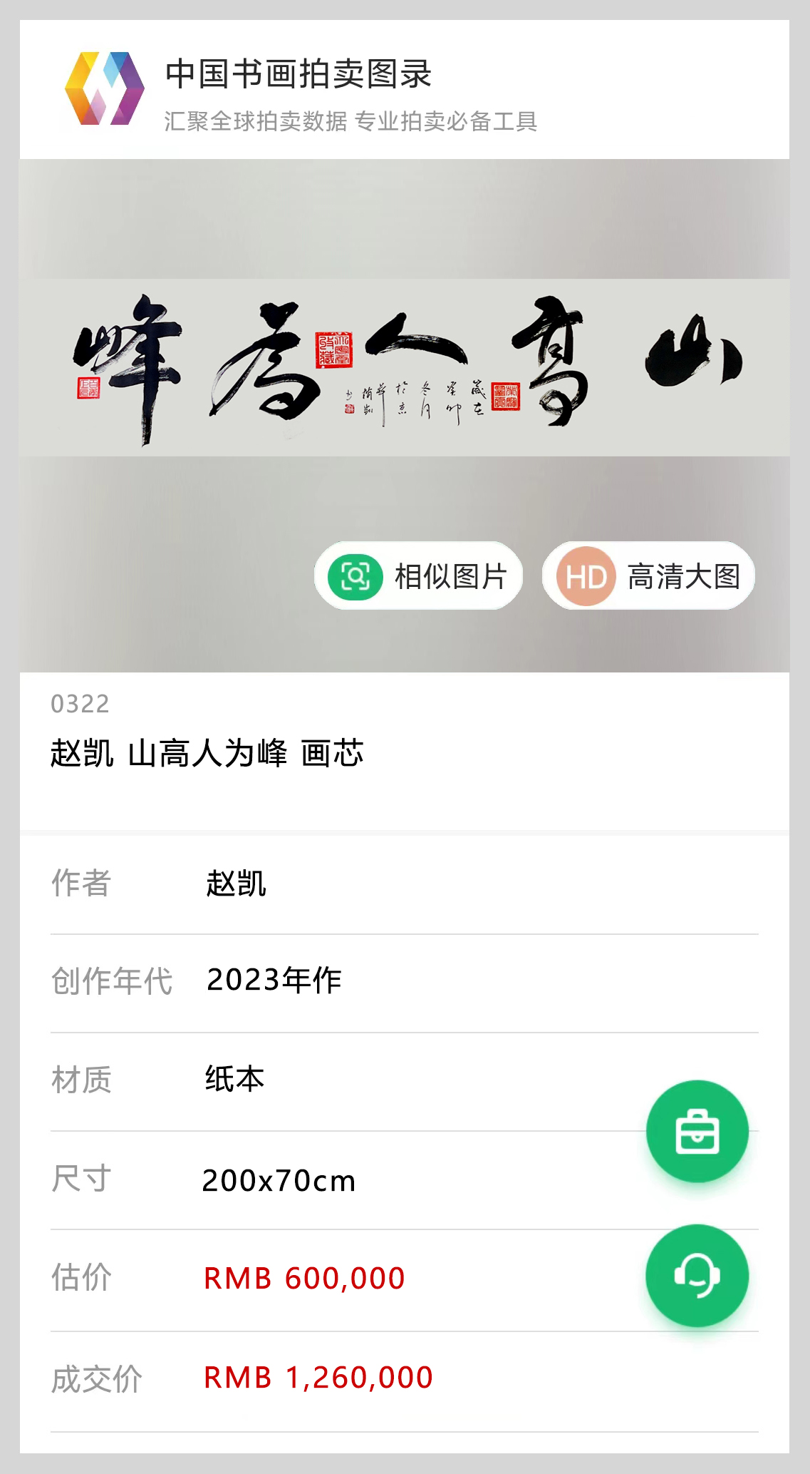 作品《山高人为峰》于苏富比2023秋季艺术品拍卖会上以RMB126万拍卖落槌成交。