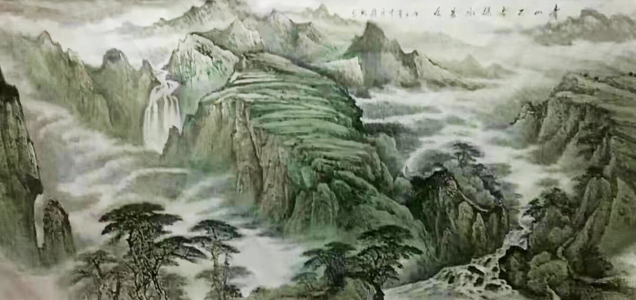 2021年5月,为国家事务局绘制会客厅巨幅山水和“鸿运当头”。