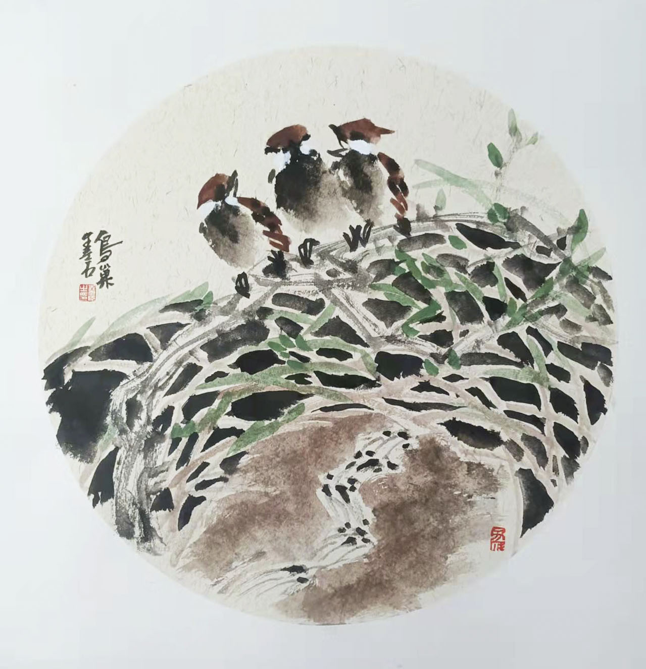 王阔海老师点评:中国花鸟画之大家巨匠者首推八大山人者,此谓中国画坛中魔鬼与巨匠之间之人物,以其辉煌成就而彪炳千秋。继之后起者,乃吴昌硕斯人、白石之辈,各以其独到之艺术体格昭示后人,且各具特色。白石者一笔成画,固尔明快,昌硕者复笔成画也,固厚重之风畅然。因尔大师之间只有风格之别,没有高下之分哉!吾爱徒尧臣习两家之风而情怀独到。可谓笔精墨妙,可喜可贺!