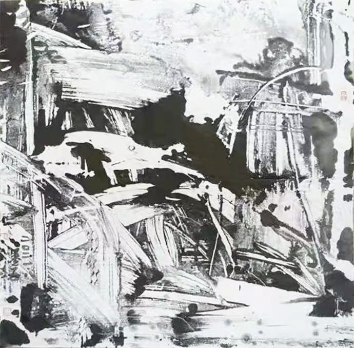 首创竹叶石画法,深入生活,表现生活,从生活中发现素材,抓住全国独有的莱州竹叶石特色利用现代泼墨泼、泼彩技巧,初步形成了自己的、与汉画形式表现相近的艺术符号。用其点缀画面富有新意,实属首创,得到中国新汉画艺术研究院院长、中国美术家协会理事、中国国家机关美协主席王阔海先生的充分肯定。