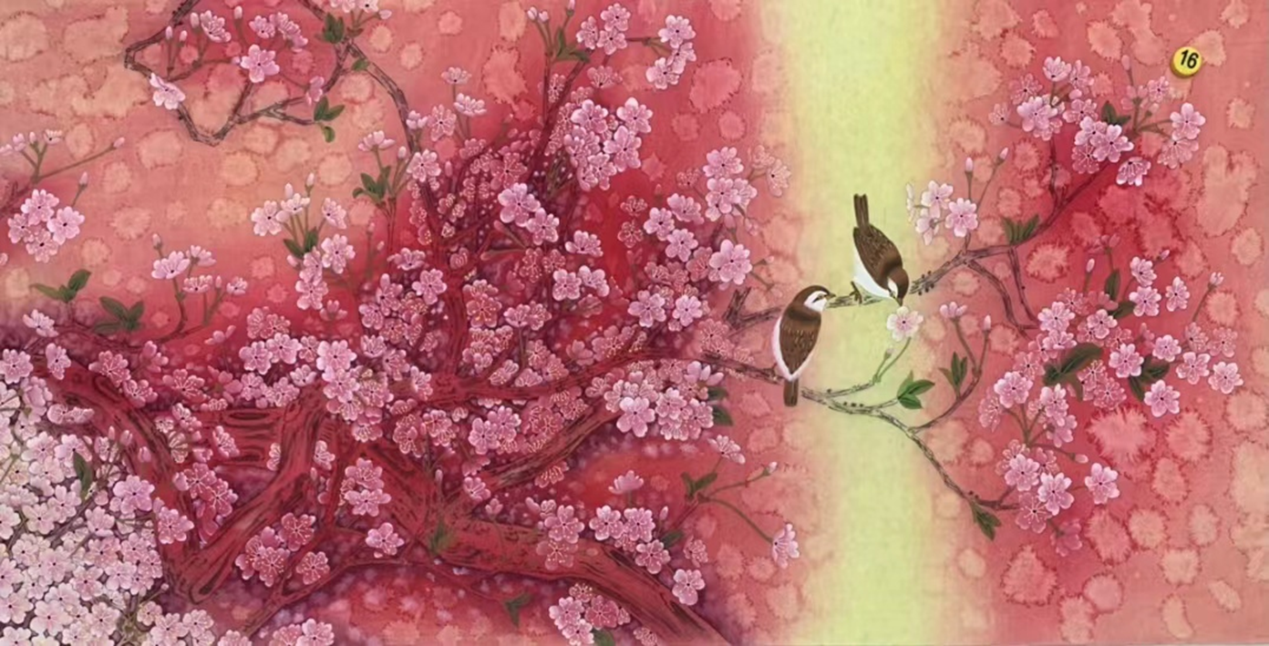 几年来,创作了许多优秀的作品。她的画不仅能够展现出较高的艺术水平,还透露着一种哲学思想,特别是她的花鸟画,她的工笔和写意花鸟造型严谨,刻画入微,线条流畅,用色沉静优雅,风格清丽脱俗,深得宋人花鸟精髓,作品趣意盎然并富有优雅的生活情趣。通过大量的摹写之后,将自己内心的感受通过丰富深刻的笔墨表达出来,将自己独特的见解融合在画作里,塑造了一幅幅清新脱俗的作品。