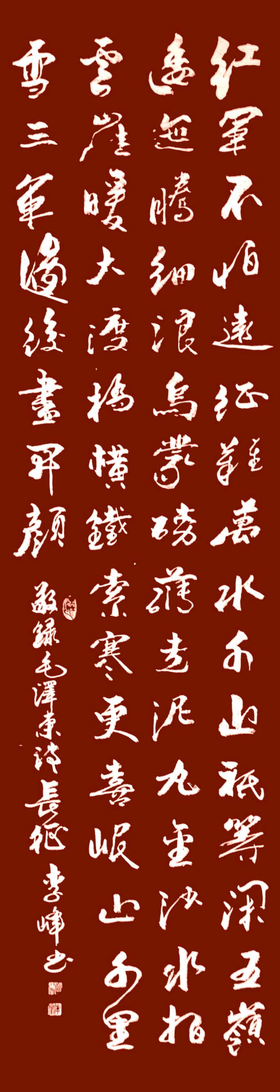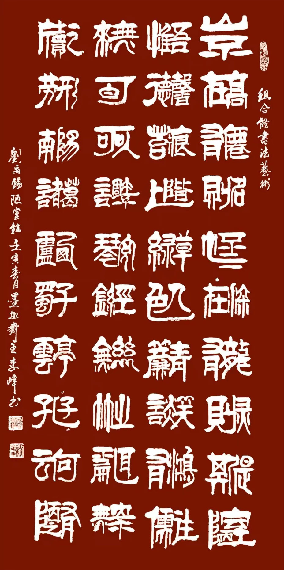 他是一位传统书法功力相当深厚的艺术大家。不能说一谈创新,就忽略了对根本法度的精湛传承。李峰书法的创新是以磨砺碑帖精深之后的再出发,所以说他的书法有着鲜明的碑帖底蕴,法度严谨,诸书皆成,又卓修隶书和行草,博涉多优,工有专成,这是历代书法大家共有的造诣特征。