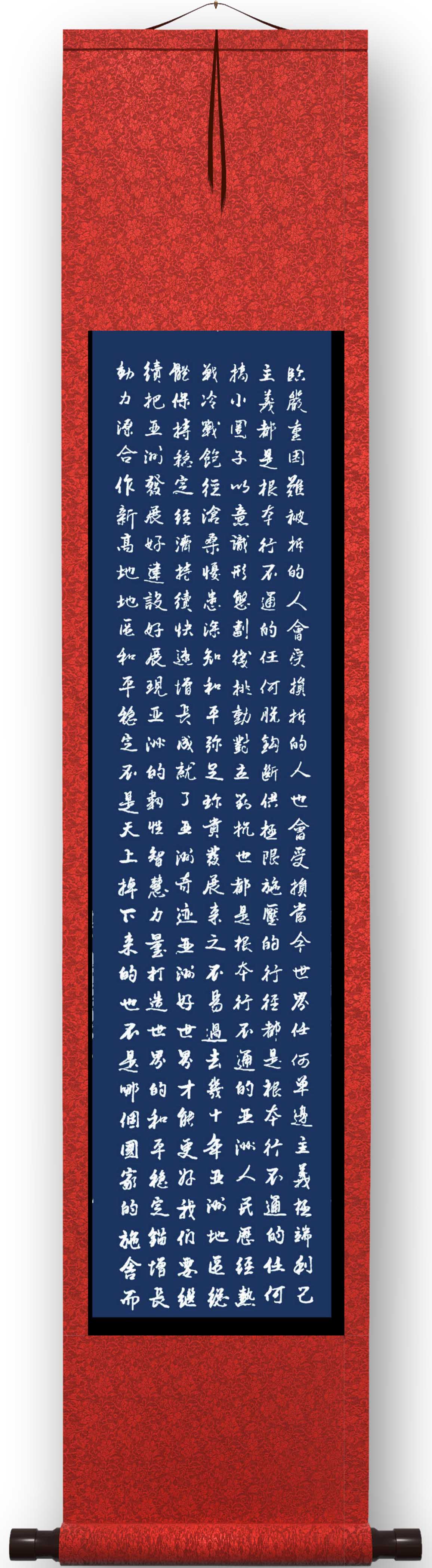 再一个就是在书法作品展上可以见到他精益求精的金书锦字,他多次参加全国书法比赛并且获奖。还有一个就是在艺术品收藏市场可以体验他作品的价值潜力,去年9月因为作品不俗的收藏品质,荣获了中国当代最具投资收藏价值的艺术家称号。我想,一位书法家在艺术品市场、书展、刊物上有三位一体的建树和影响力,必然是扎扎实实的历练结果,没有真正的书法实力,不会拥有这种周全的书法创作成绩。