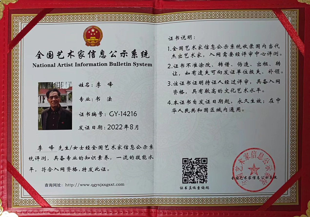 2022年7月受邀入选【全国艺术家信息公示系统】艺术名家展了经典书法作品。