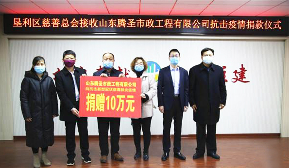 2020年新年伊始,新冠肺炎疫情牵动着每个中国人的心。2月4日,在董事长的带领下向垦利区慈善总会捐款10万元,用于为奋战在抗疫一线的防控人员购买防疫物资。在疫情期间,腾圣公司担负着东营市供暖供热抢修任务,腾圣公司职工严格按照国家的防疫规定,及时复工复产,春节都没休息,一直奋战在第一线。