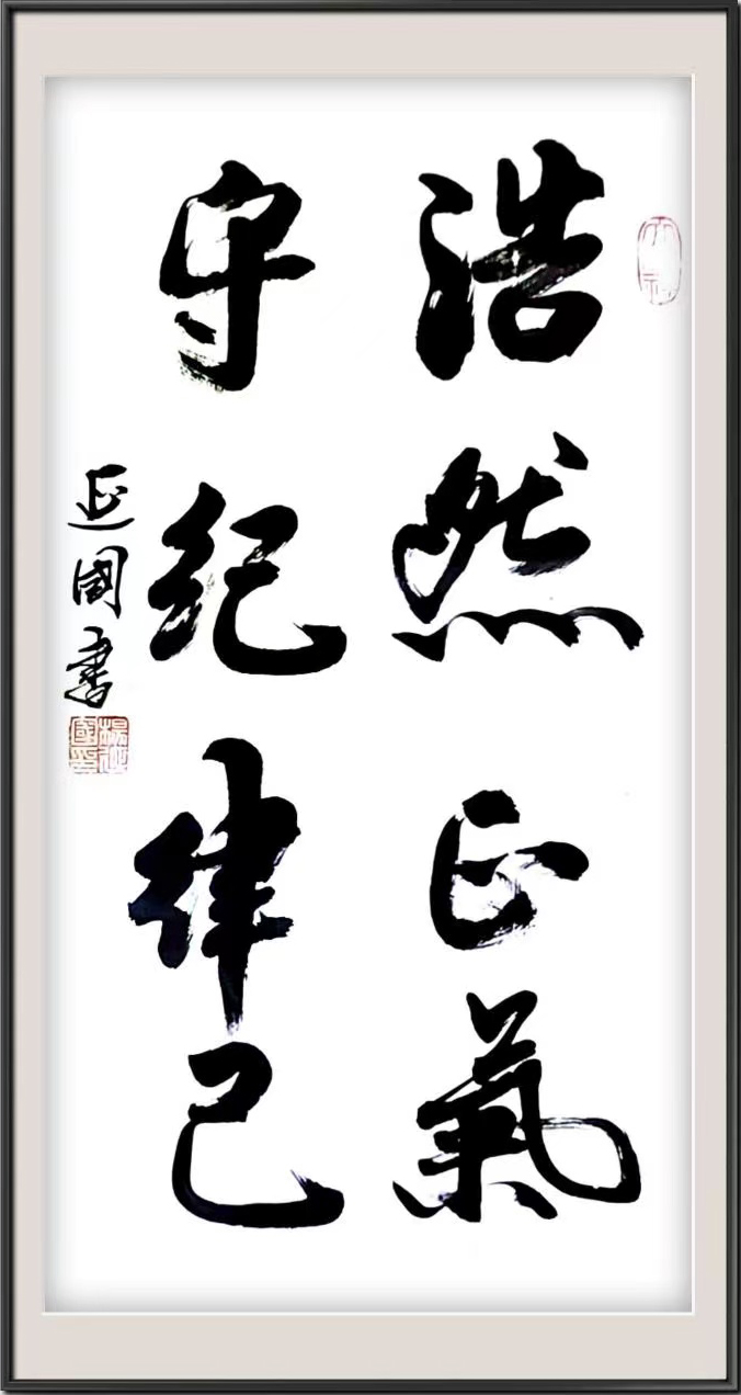 在翰墨文化上,杨延国先生一直都是有着极强的艺术水准和责任担当,每每作书,既是有致广大的取法传承,同时也是有尽精微的个性蕴藉,一幅幅行书作品,可谓皆是形神兼备也!不仅如此,得益于军旅生涯的人生经历,杨延国先生的众幅书法风范也是有随之而变得异常坚韧,是谓执笔落墨深追妙临,立意承脉取法乎上,心有文风,胸有造化,而如此正典书品,观之也诚是可令人过目难忘也!