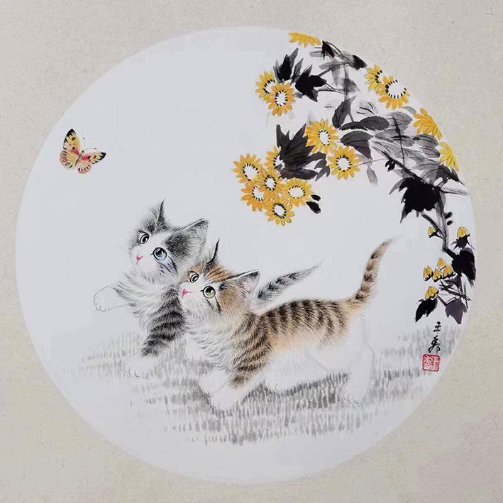 作品(金秋戏蝶)尺寸:硬卡68cm×68cm