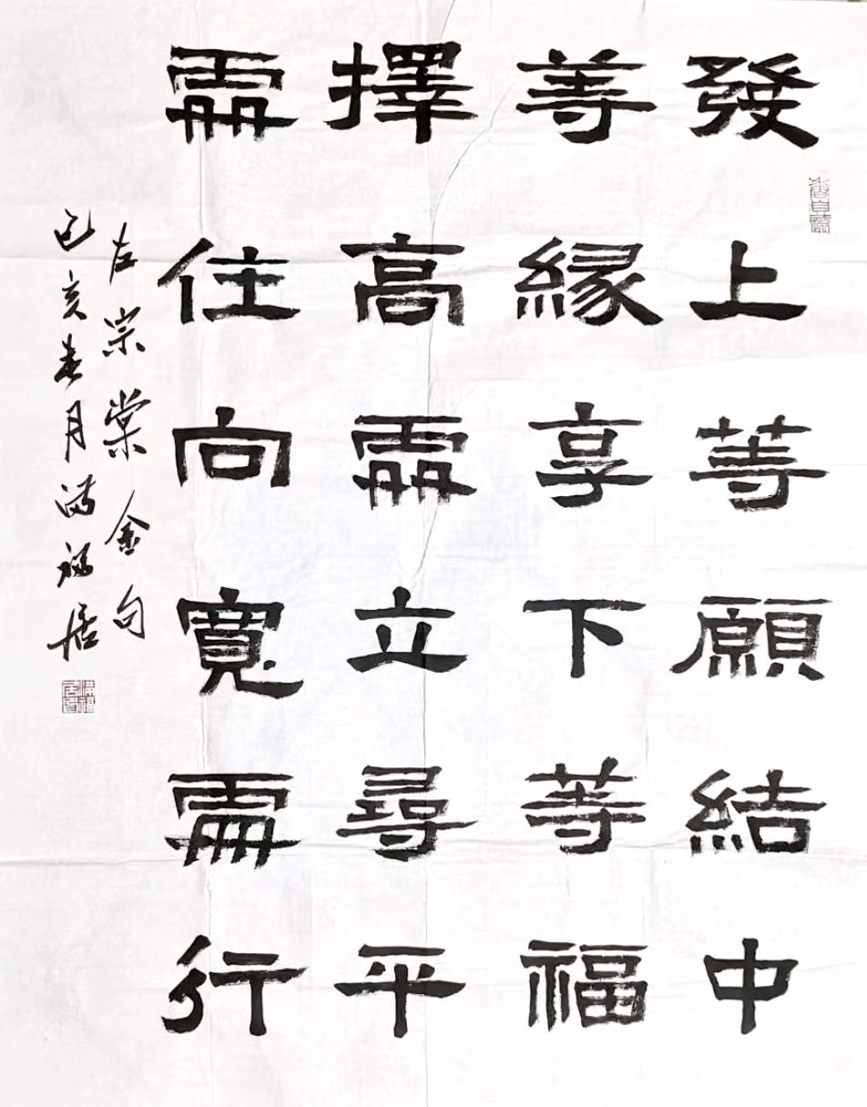 另外为电视剧及庙堂,公园题写扁额和书法作品,作品被中外友人收藏。并参于编辑多部各种书法教材,且出版过自己书法作品集,书法养生作品集。