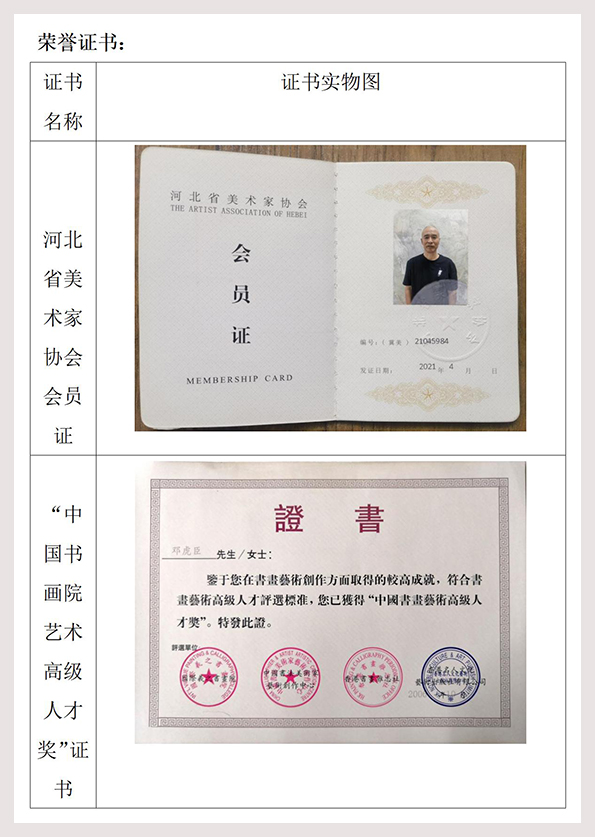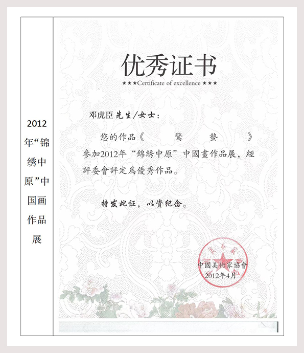 2012 年“锦绣中原”中国画作品展荣获优秀奖;